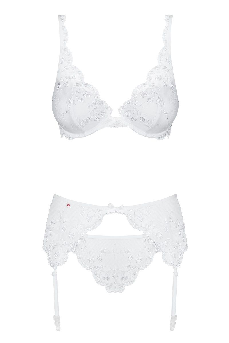 Роскошный комплект для соблазнения - бюстгальтер, трусики и пояс для чулок. В комплекте: бюстгальтер, трусики-стринги, пояс с пажами.