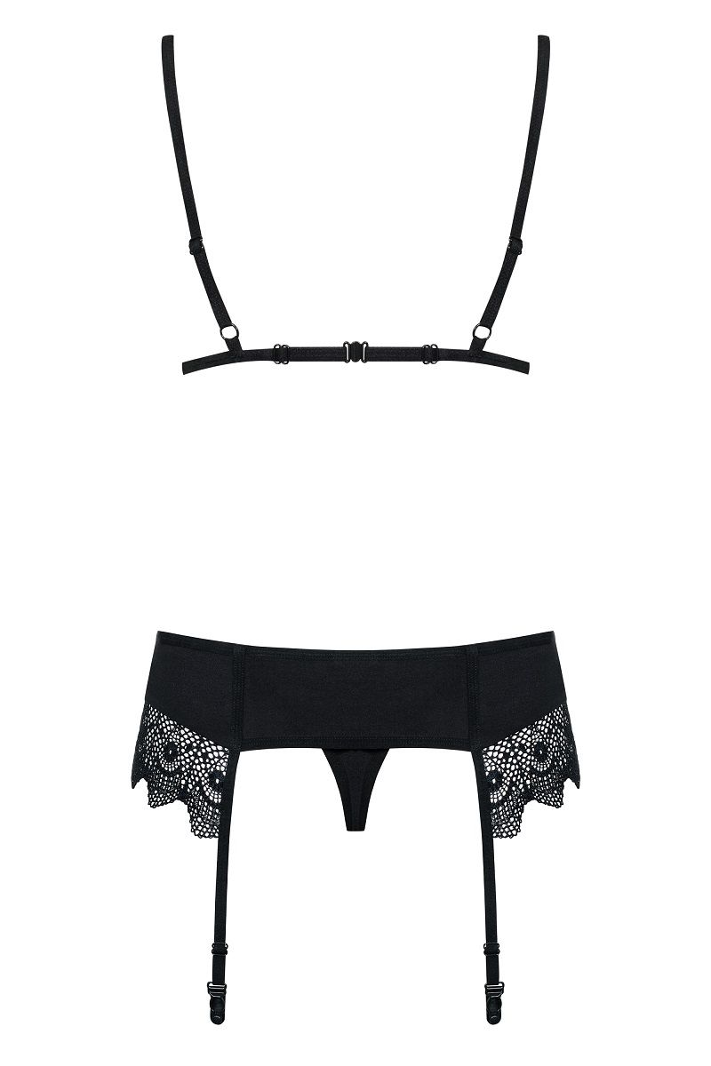 Комплект Moketta с кружевной оторочкой лифа и пояса В комплекте: бюстгальтер, трусики-стринги, пояс с подвязками.
