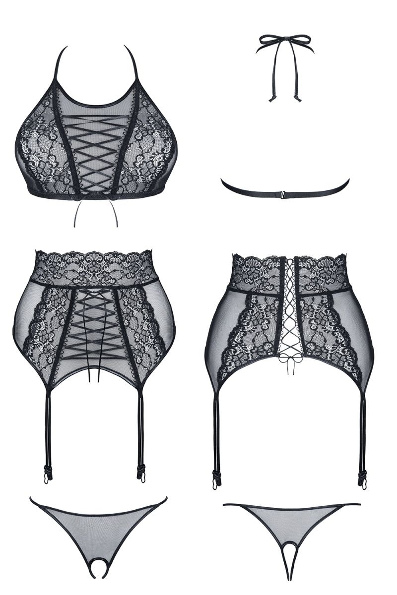 Комплект с высоким поясом Vanda. Украшен атласными шнуровками. В комплекте: бра, трусики с доступом, пояс.