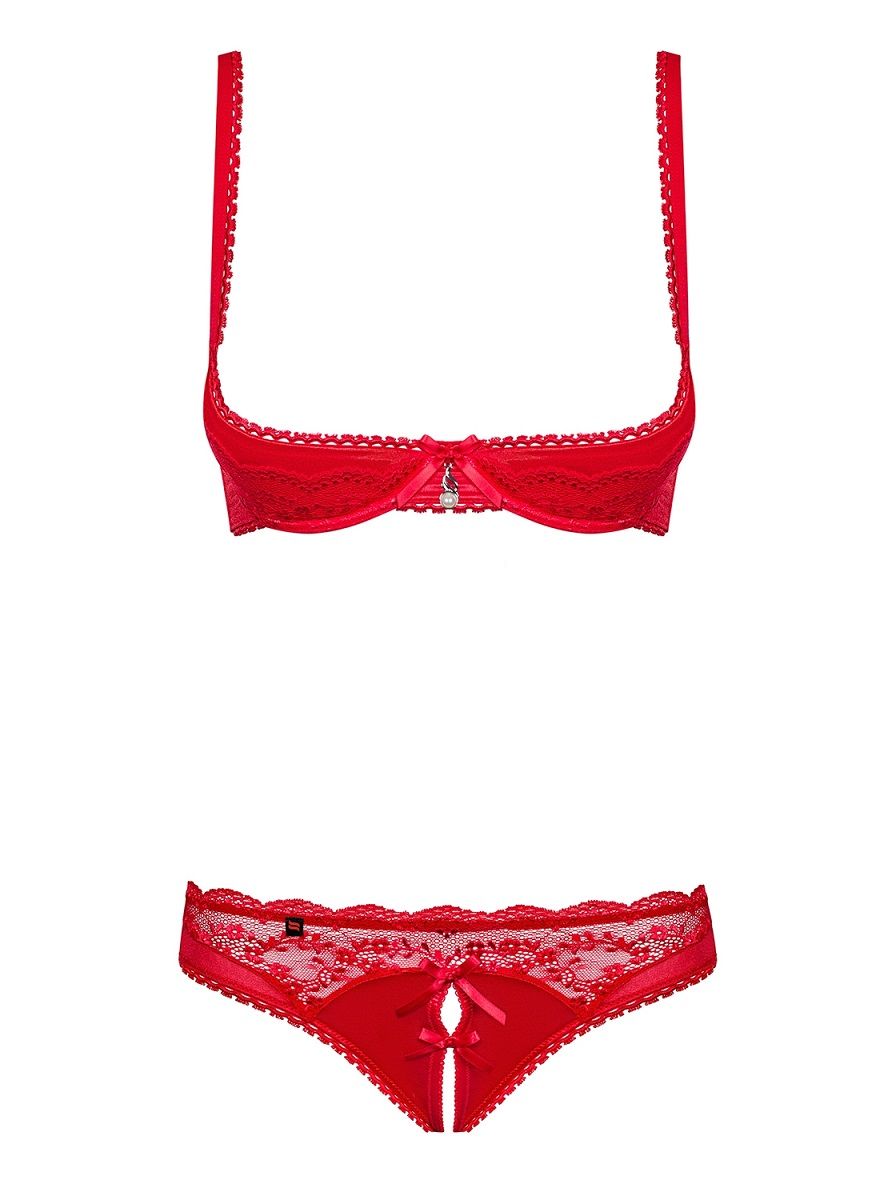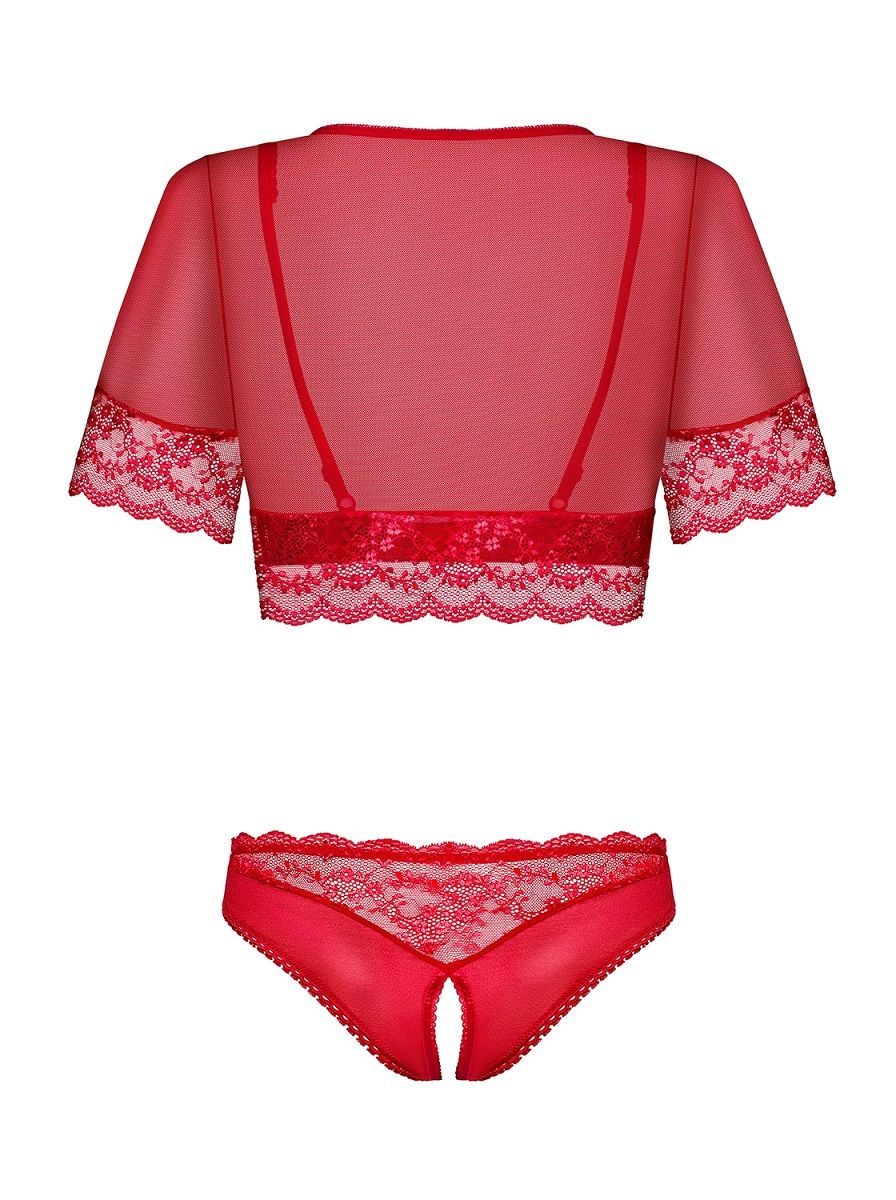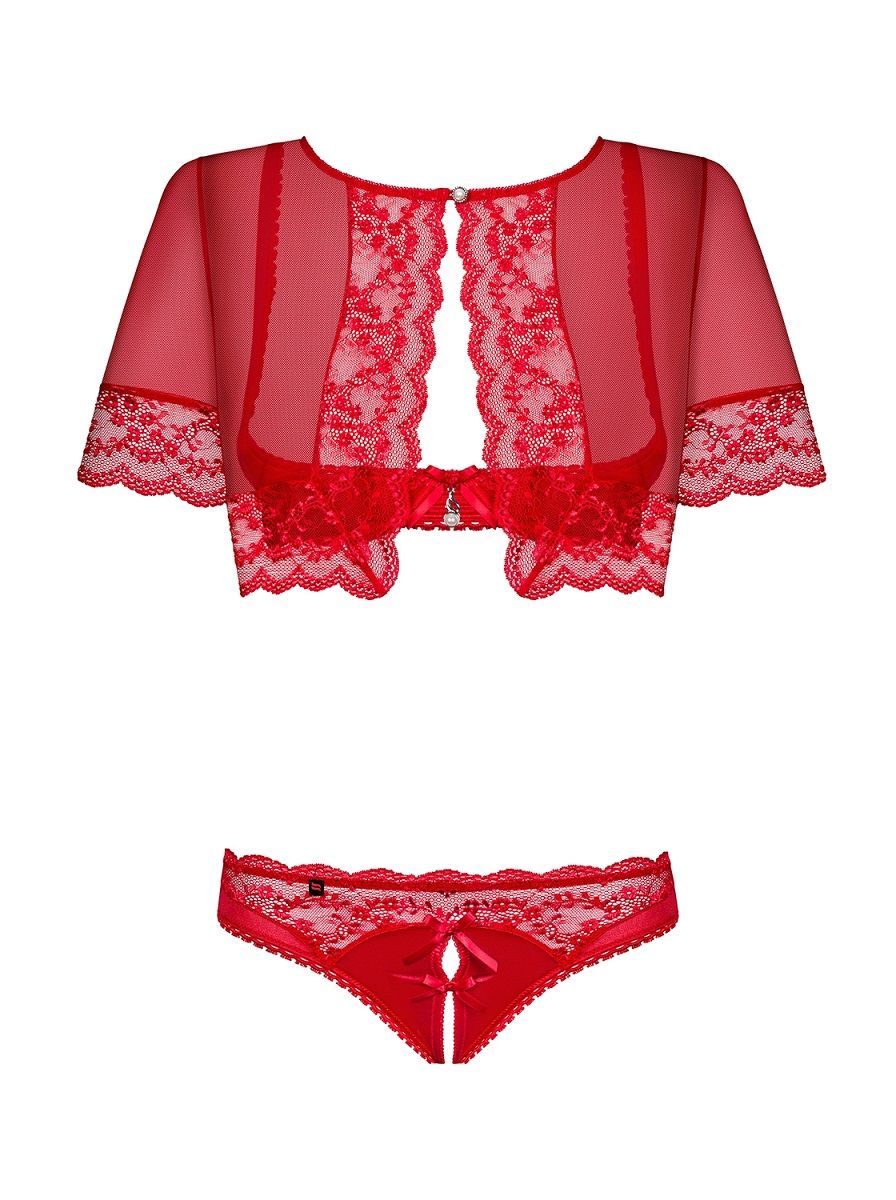 Оригинальный комплект Lovica из 3 предметов. Поверх открытого бра на косточках надевается болеро с кружевами. Трусики с интимным доступом. В комплекте: бра, болеро, трусики.