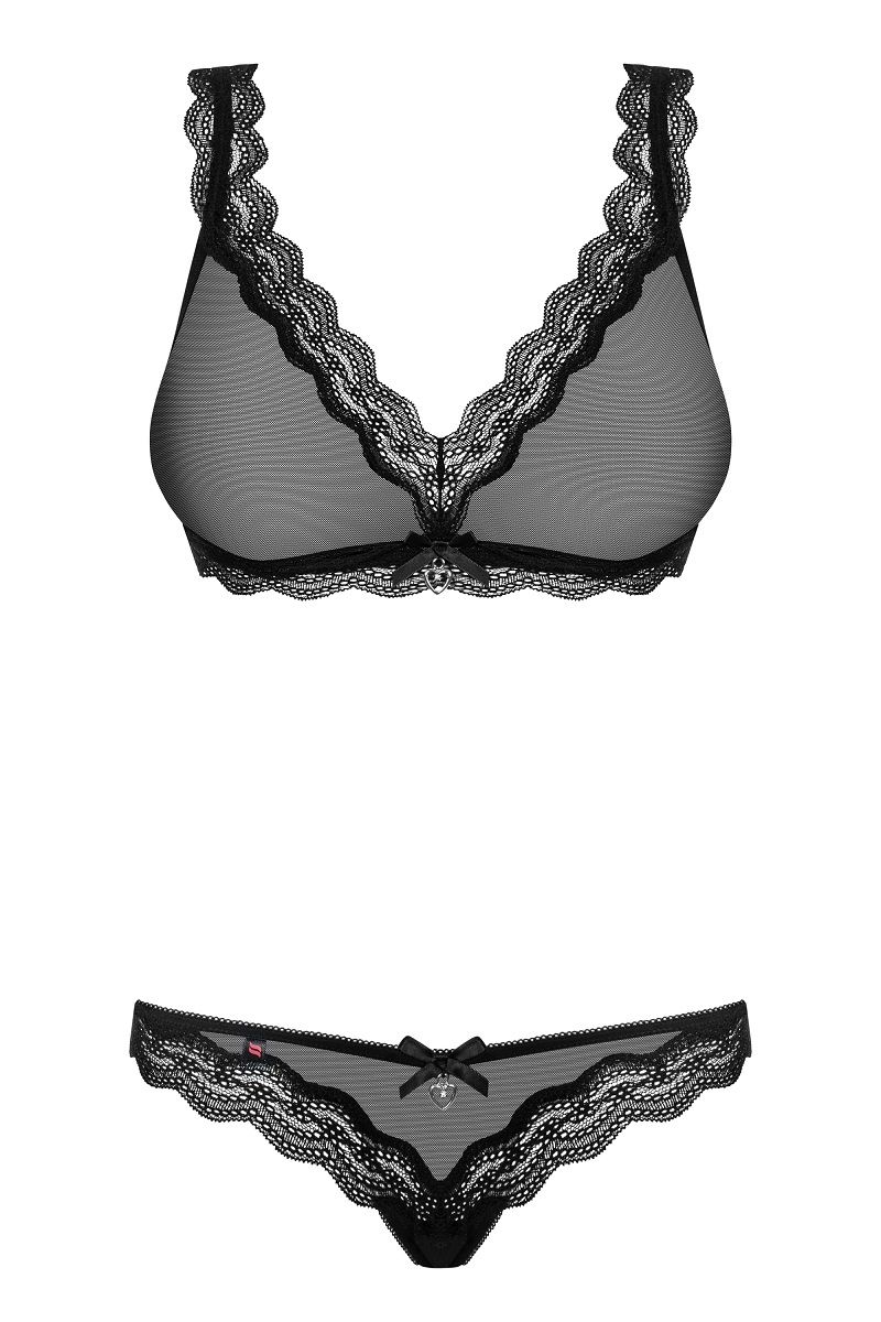 Полупрозрачный комплект с кружевной отделкой. В комплекте: лиф, трусики.