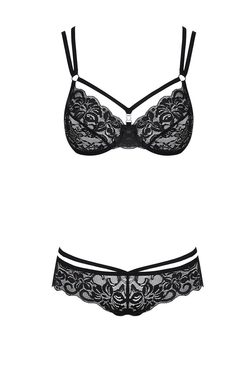 Комплект белья выполнен из эластичного кружева. В комплекте: бюстгальтер, трусики.