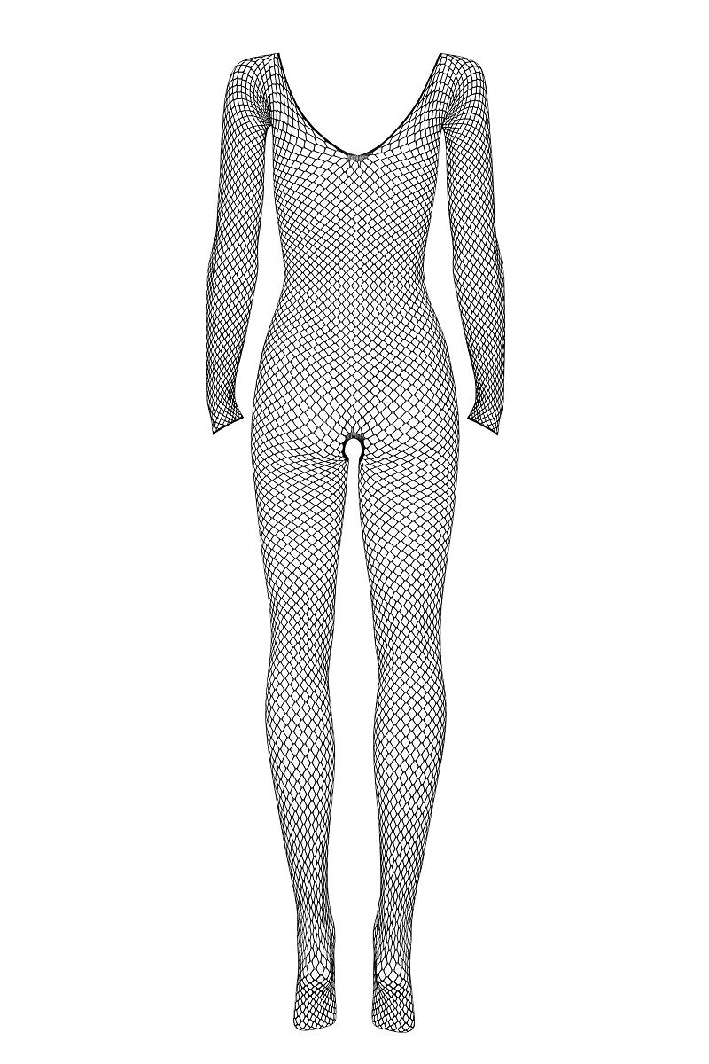 Соблазнительный комбинезон в мелкую сеточку, идеально облегает фигуру.