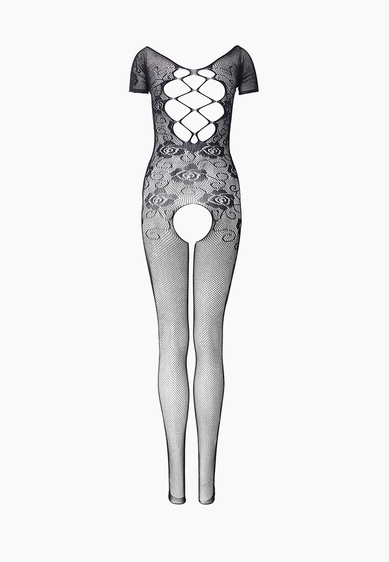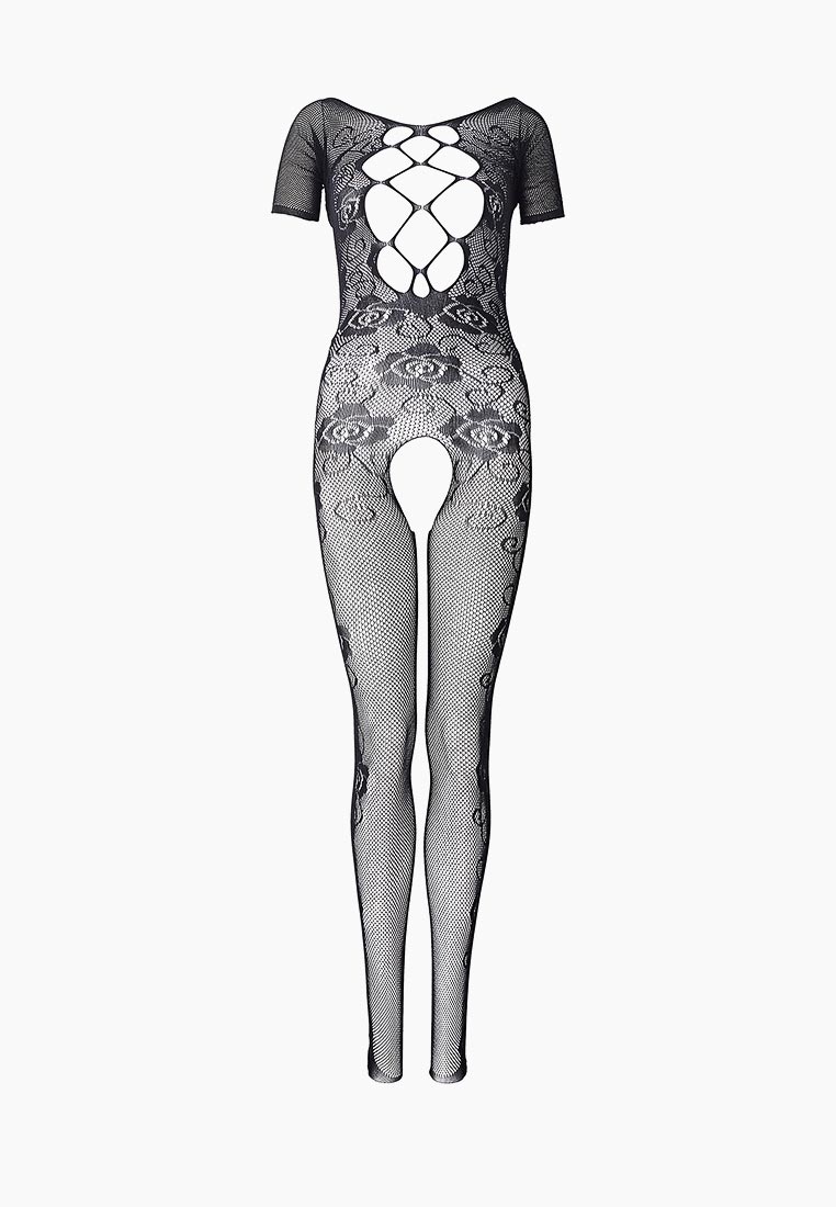 Чёрный комбинезон с красивым цветочным орнаментом. С интимным доступом. Трусики не входят в комплект!