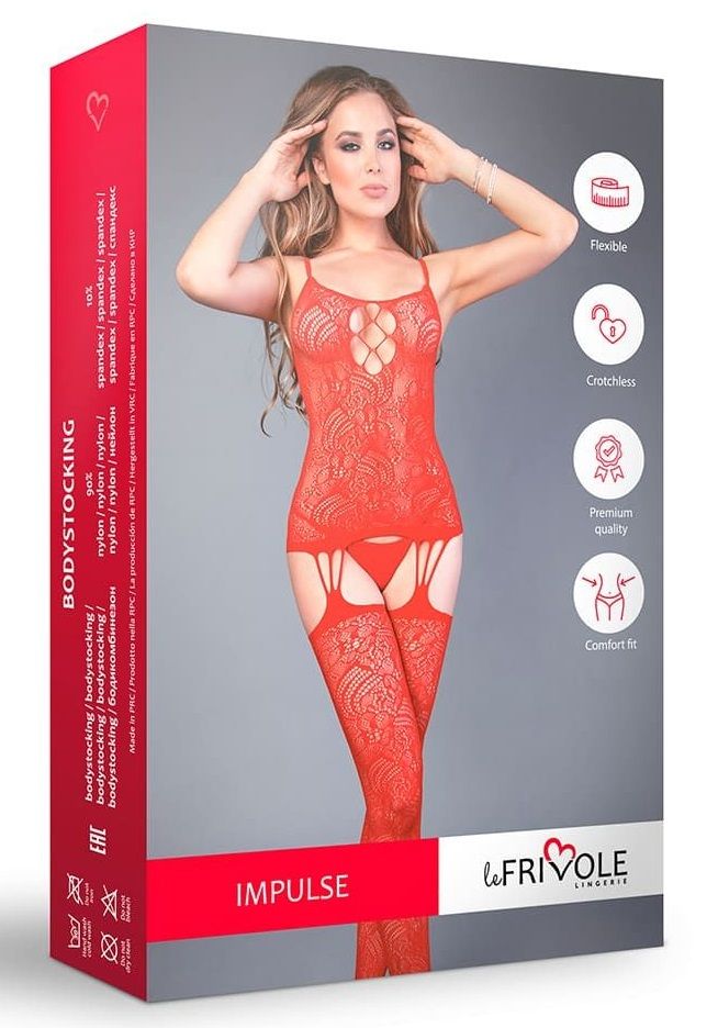 Красный ажурный комбинезон с имитацией шнуровки на груди. Трусики не входят в комплект!