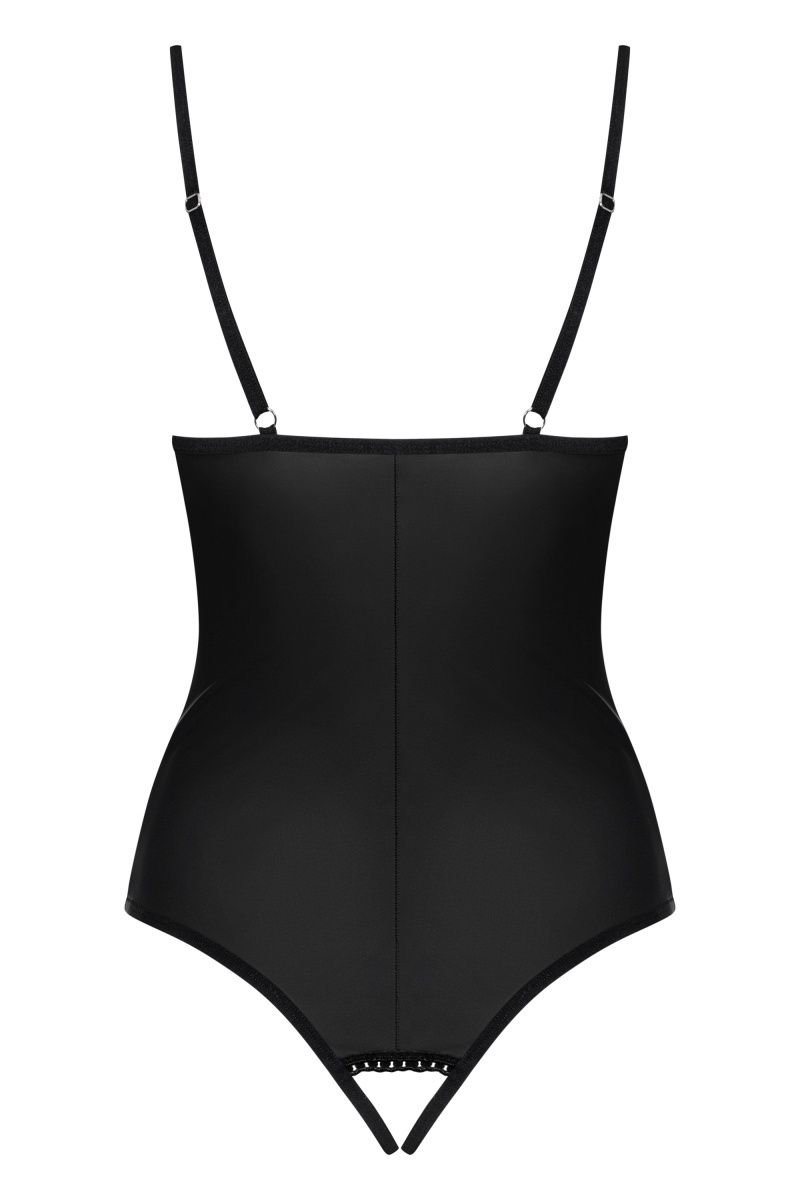 Соблазнительное контактное боди Redella выполнено из эластичной эко-кожи. Лиф мягкий без косточек, бретели регулируются по длине. Шнуровка проходит практически по всей передней части изделия.