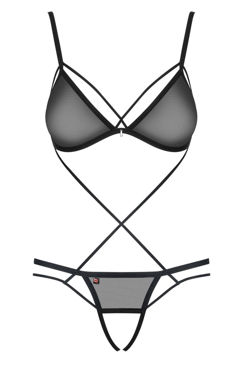 Оригинальное контактное боди выполнено из прозрачной сеточки, верхняя и нижняя часть боди соединена тонкими стреп-лентами, бретели регулируются.