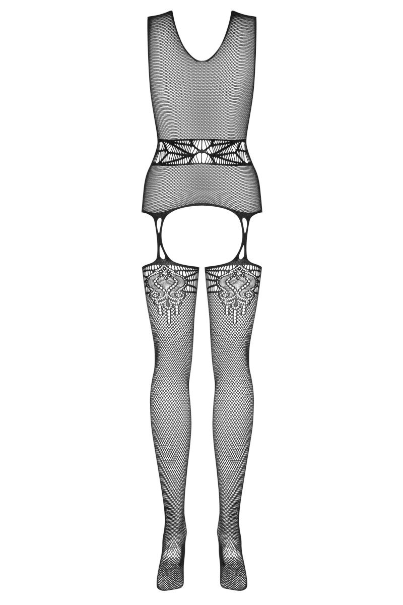 Комбинезон с имитацией чулок, выполнен из эластичного и приятного на ощупь материала с оригинальным рисунком.