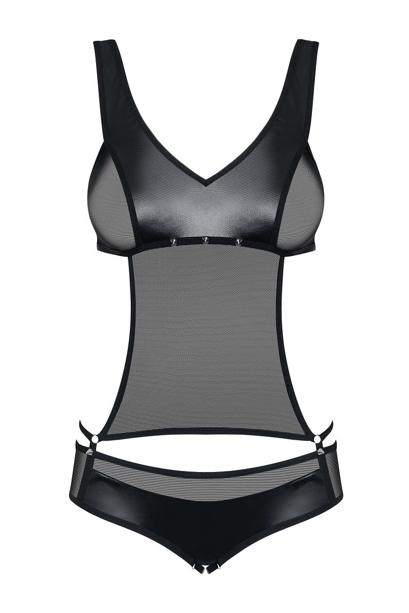 Сексуальное боди из стрейч-атласного и полупрозрачного материала, низ боди с доступом.