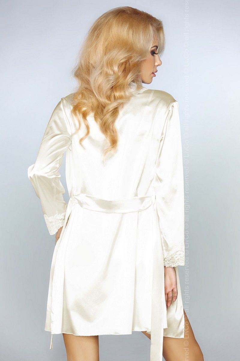 Элегантный комплект из искусственного шёлка, сорочка на тонких бретелях, пеньюар и трусики. В комплекте: пеньюар, сорочка и трусики-стринги.