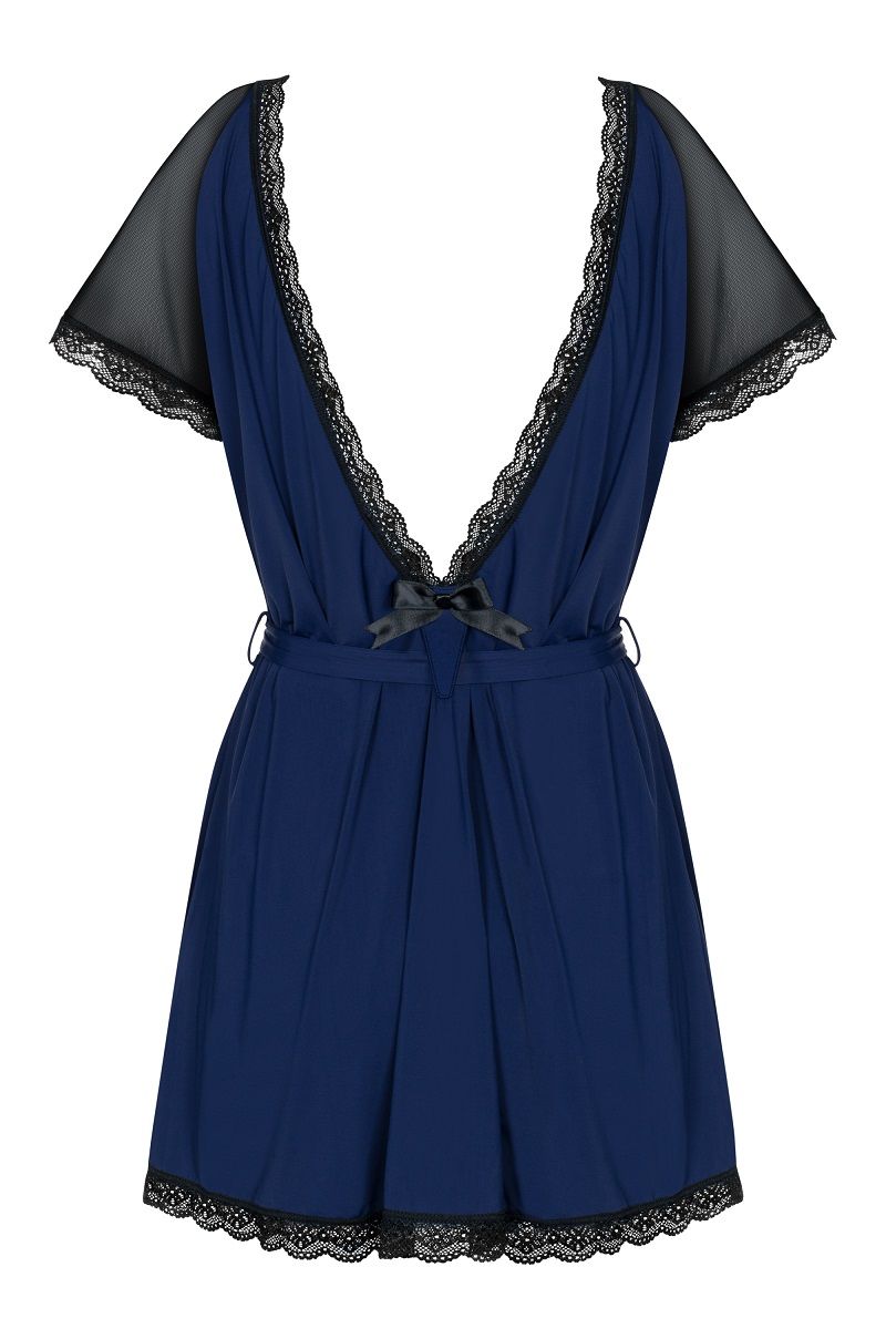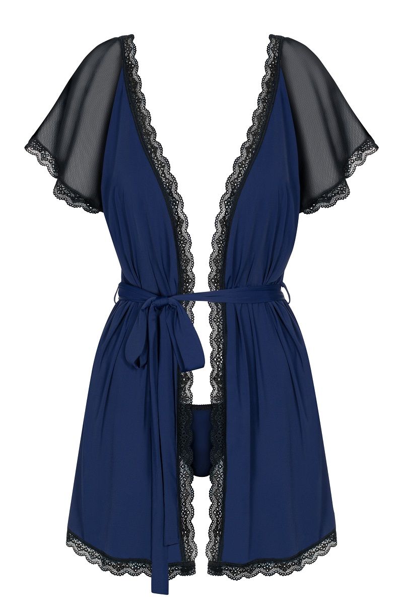Элегантный пеньюар с полуоткрытой спиной, вырез на спине украшает кружева, в комплект входят трусики. В комплекте: пеньюар, трусики-стринги.
