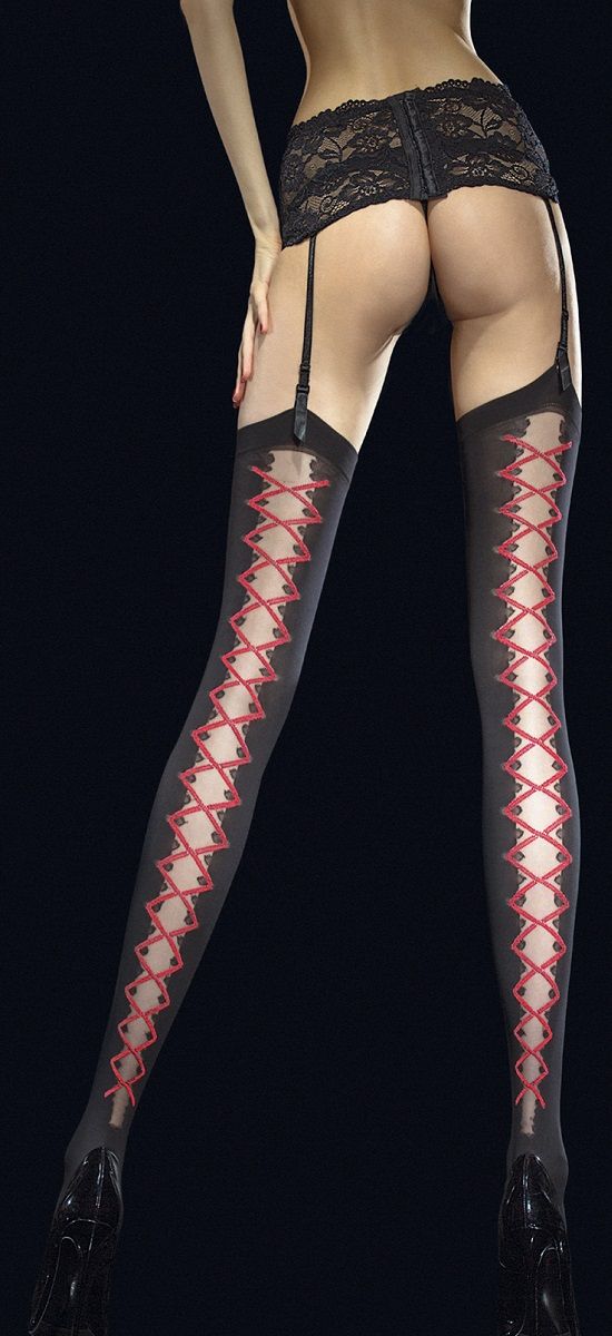 Чулки под пояс VALENTIS 40 den с имитацией шнуровки.
