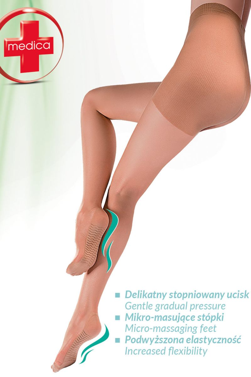 Противоварикозные колготки, моделирующие линию бедер и ягодицы, с профилактическим массажем ступни. Плотность - 20 ден.