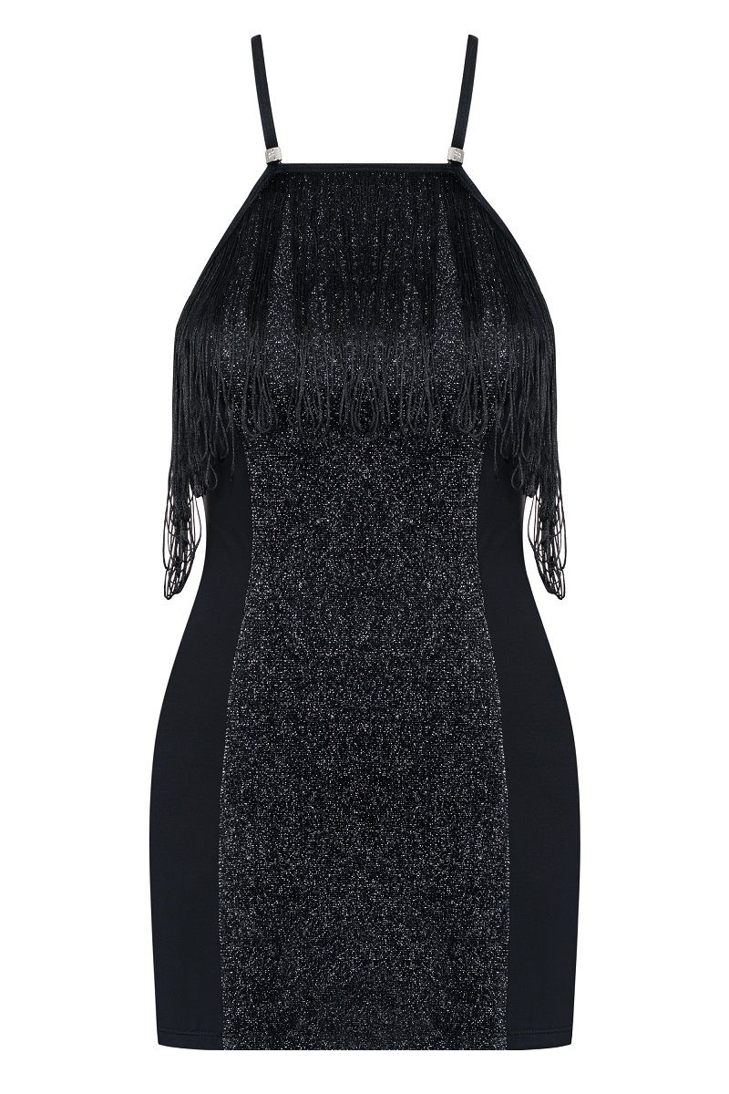 Эротическое платье с бахромой и люрексом. В комплекте: платье, трусики-стринги.