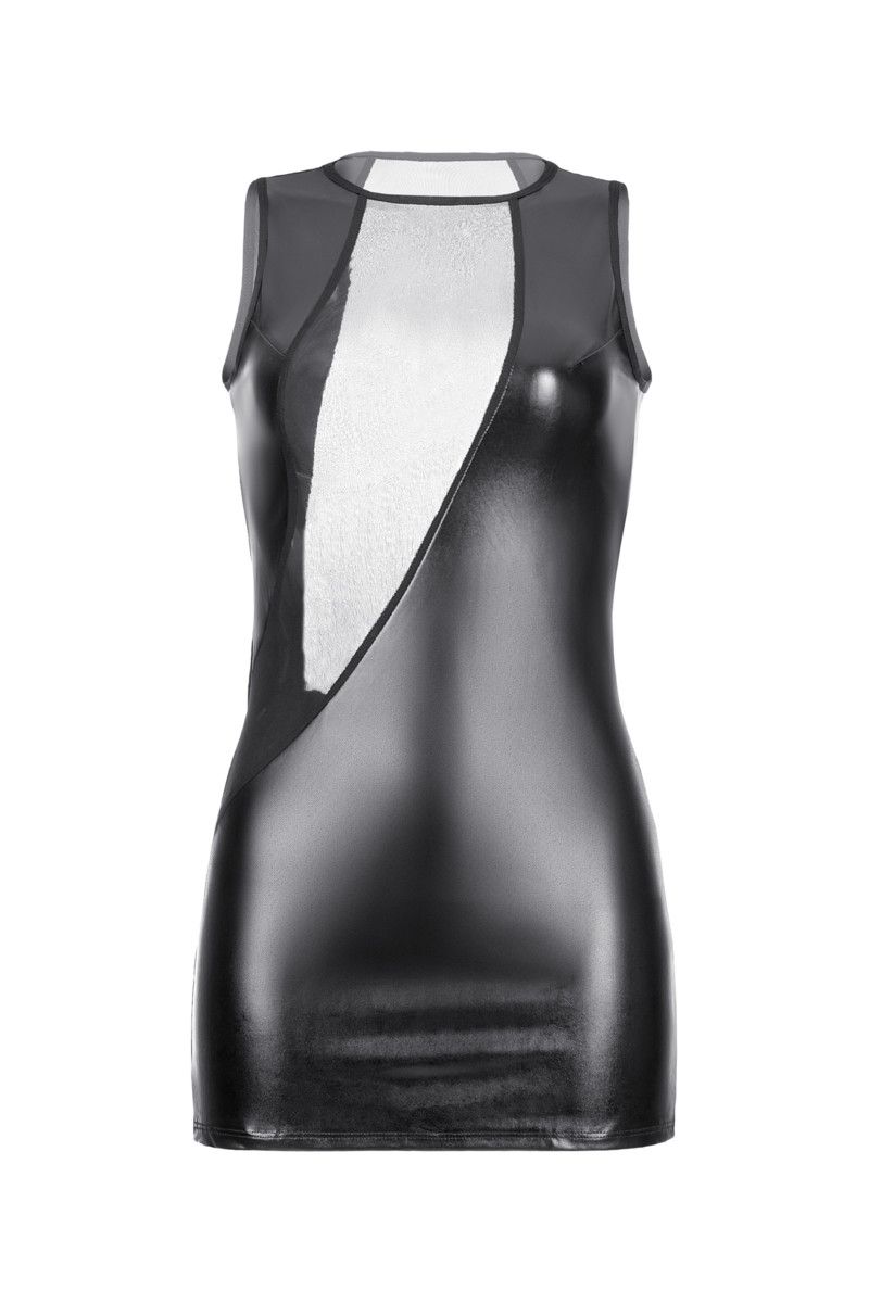 Облегающее wetlook-платье Jilian подчеркнет естественные изгибы тела, а асимметричная ставка прозрачной сетки пикантно продемонстрирует декольте и спину. Наряд придется по вкусу любительницам современных смелых образов. В комплекте: платье и трусики-стринги.