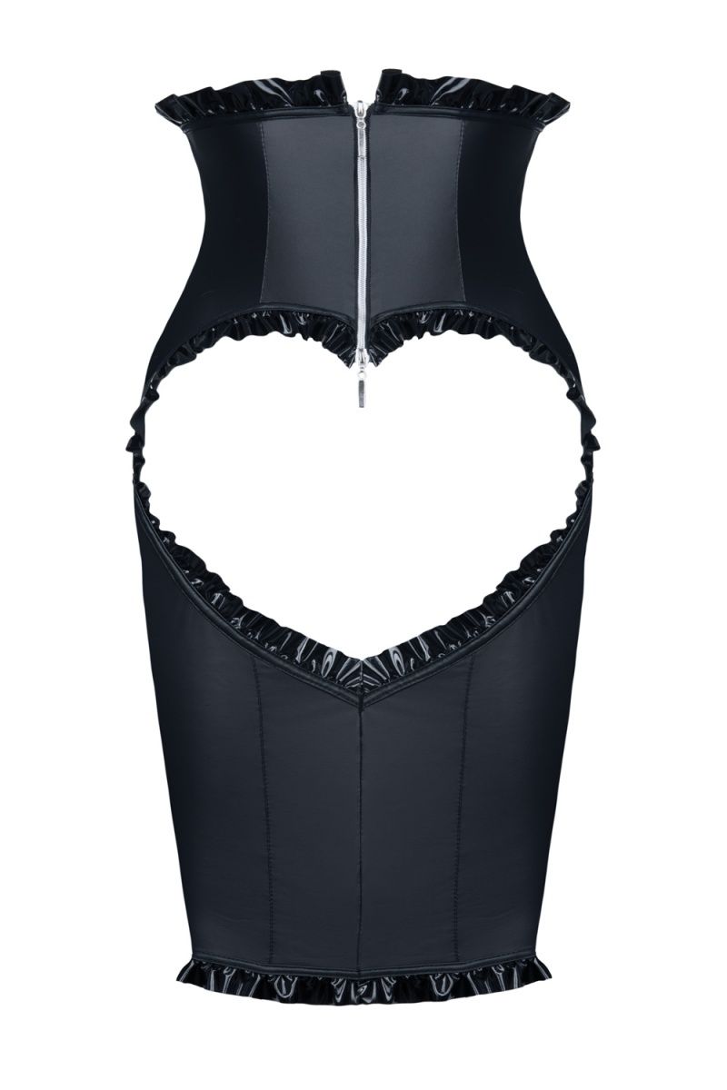 Ingrid – завораживает, притягивает и заманивает в мир удовольствий и соблазна. Юбка полностью изготовлена из эластичного материала, что позволяет изящно подчеркнуть силуэт, а благодаря уникальному крою – визуально уменьшить талию. Но самая пикантная часть – находится сзади. Вырез в форме сердца позволяет насладиться видом аппетитно подчеркнутых ягодиц, а глянцевый материал, из которого выполнена окантовка – не позволит отвести от вас взгляд.