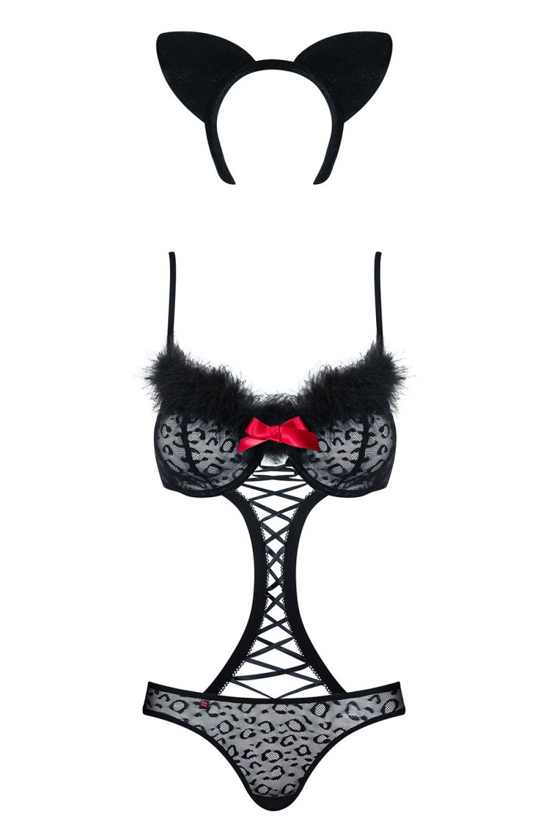 Сексуальный костюм дикой кошки. Состоит из тедди с хвостом и опушкой, а также ушек на голову. В комплекте: тедди, ушки.