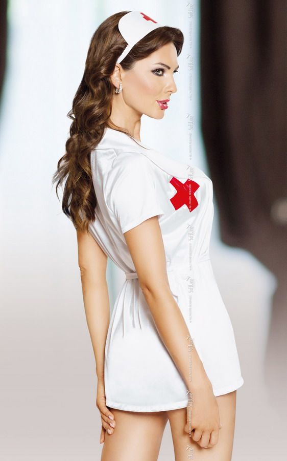 У этой заботливой санитарочки мужчина может просить всё – будет исполнено! Услужливая прелестница сделает и массаж, и перевязку повреждённых членов. Если потребуется, она и свой белоснежный халатик с красными медицинскими крестами распахнёт… Чего не сделаешь ради раненого бойца! Коротенький халатик из слегка блестящей, невероятно приятной к телу материи соблазнительно завязывается на боку. Стоит лишь дернуть за веревочку, чтобы медсестра продемонстрировала вам свои прелести. Дополняет образ кокетливый чепчик-козырек. Любовь - вот лучшее лекарство от всех недугов. В комплекте: халатик, головной убор.