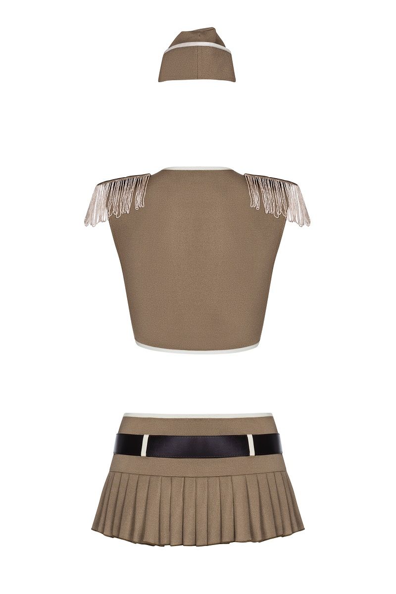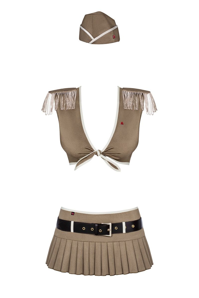 Кто возьмет командование в спальне сегодня вечером на себя? Вы! С помощью этого заманчивого костюма вы можете установить правила и отдать своему мужчине пикантные приказы. Он будет выполнять их с большим удовольствием! Готовы ли вы к этой захватывающей игре? Получите удовольствие! Костюм состоит из топа с погонами, окаймленными бахромой, завязывающегося под бюстом, плиссированной мини-юбки с черным поясом, солдатской пилотки и трусиков. В комплекте: топ, юбка, пилотка, трусики-стринги.