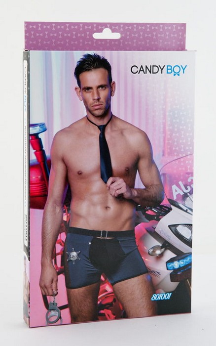 Костюм полицейского из 2 предметов: трусы-шорты с сетчатыми боковыми вставками и галстук. В комплекте: трусы, галстук.
