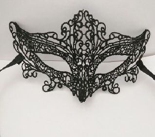 Ккружевная маска в венецианском стиле с многочисленными узорами. Завязывается на черные атласные ленты. Упаковка - бумажный конверт. Размеры - 23,5 х 14 см.