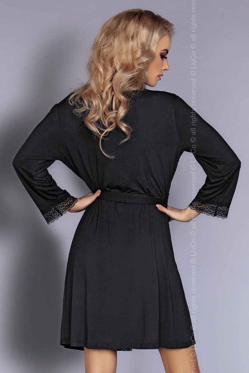 Пеньюар с длинными рукавами из вискозы, украшен кружевом.