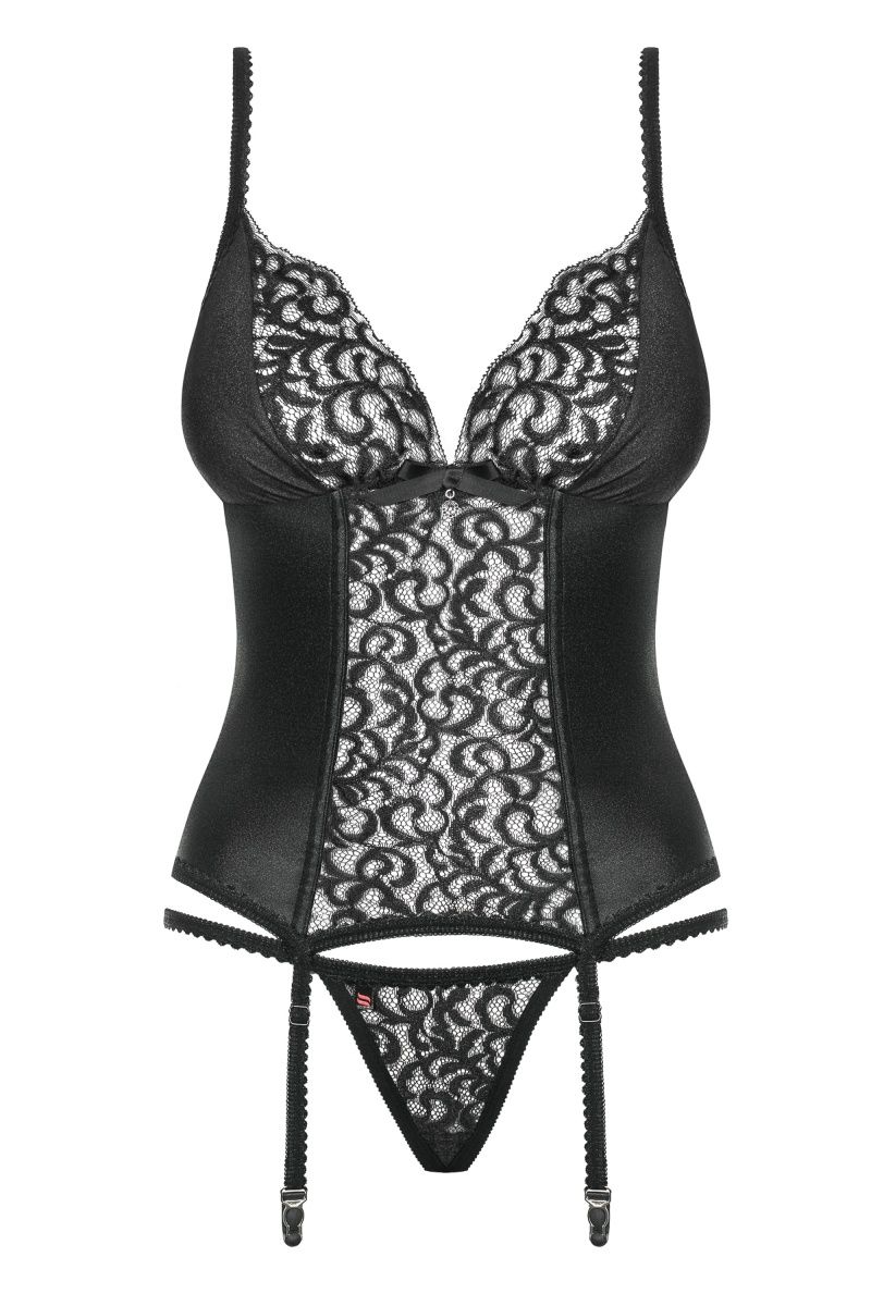 Роскошный корсаж Laluna с подвязками для чулок выполнен из эластичной блестящей ткани и красивого кружева. Лиф мягкий без косточек, бретели и подвязки регулируются по длине. На спинке очаровательная шнуровка. В комплекте: корсаж и трусики-стринги.