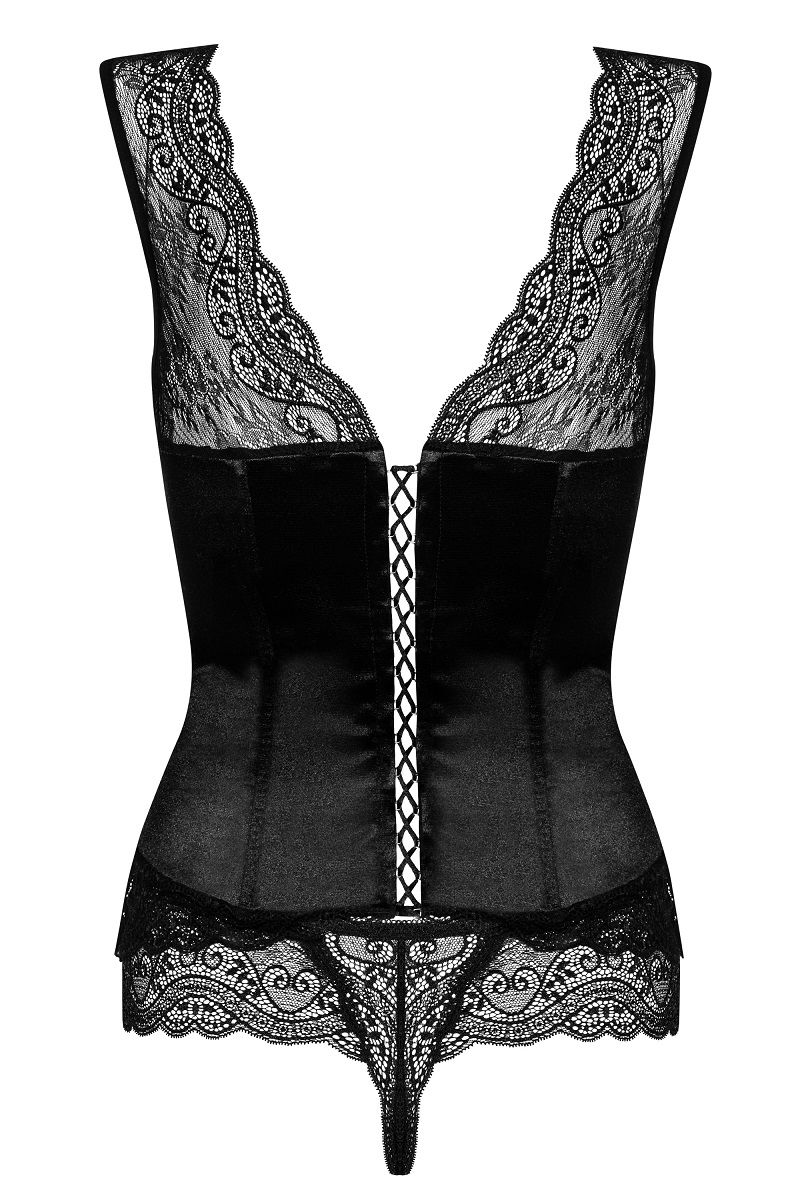 Корсаж-топ Miamor в комплекте с трусиками. Плотно облегает фигурку, подчеркивает линию талии. В комплекте: корсаж, трусики-стринги.