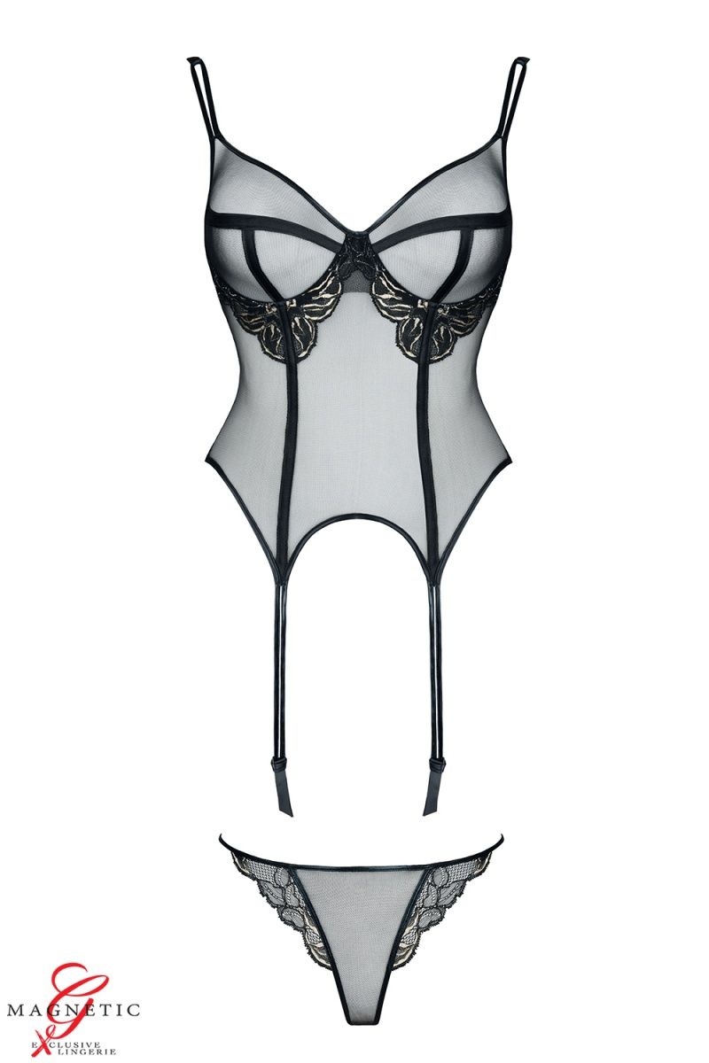 Манящий корсаж Ginette с комплекте с трусиками. В комплекте: корсаж, трусики-стринги.