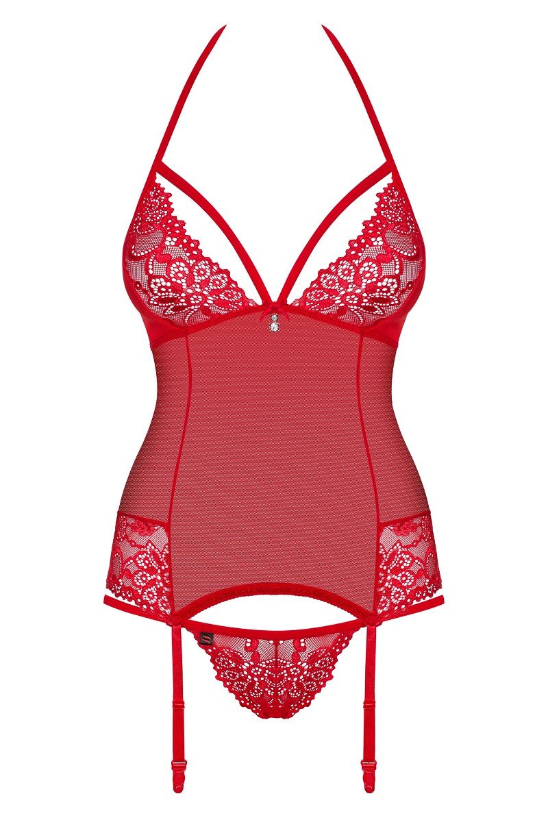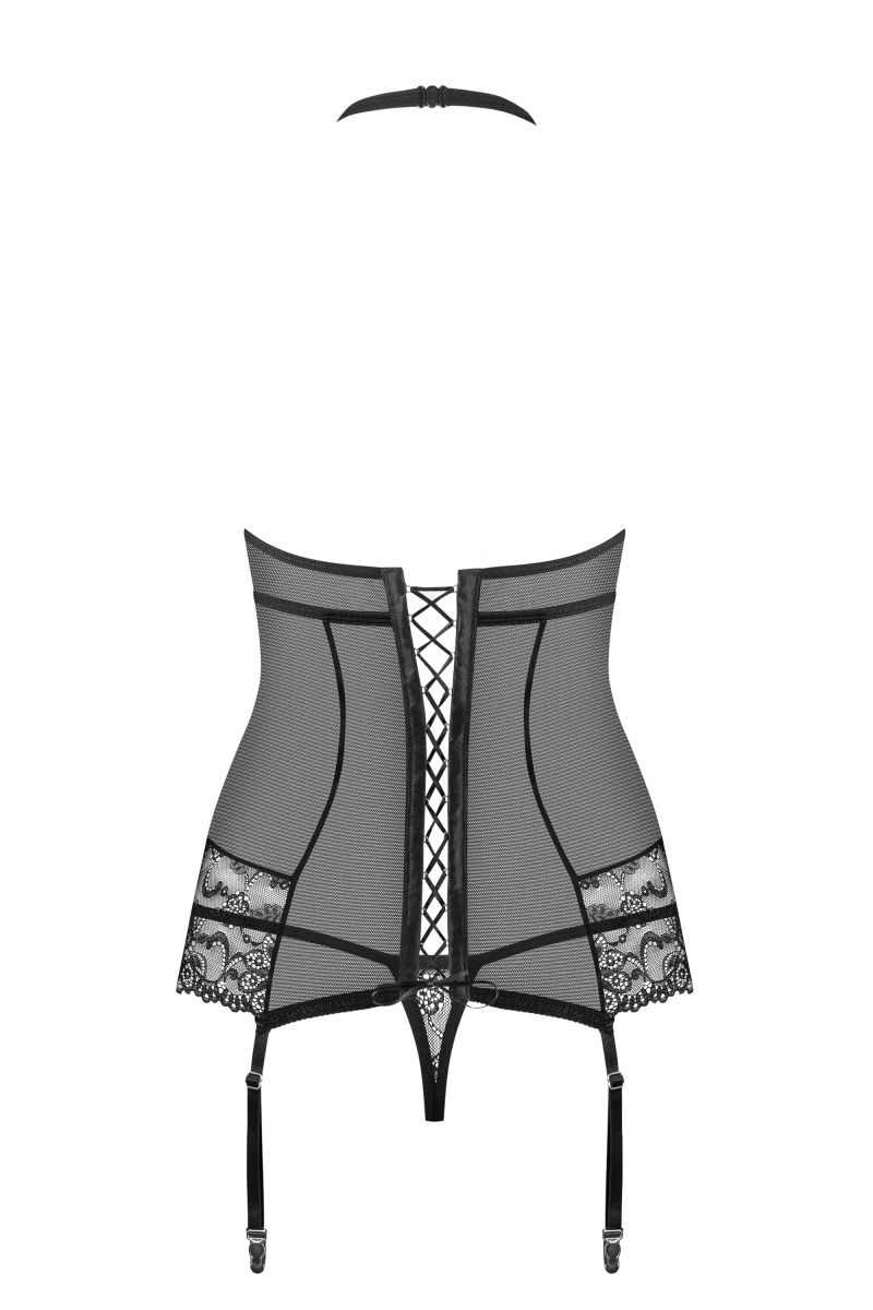 Сексуальный корсаж с кружевами. Оригинальное исполнение лифа. Трусики в комплекте. В комплекте: корсаж, трусики-стринги.