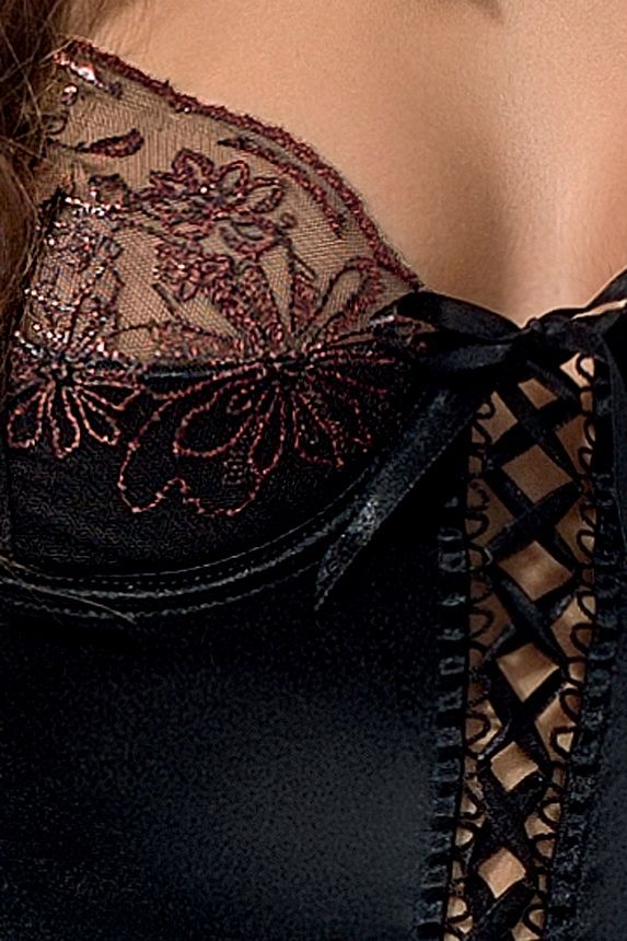 Соблазнительный корсаж Brida с полупрозрачным цветочным кружевом и шнуровкой. В комплекте: корсаж, трусики-стринги.