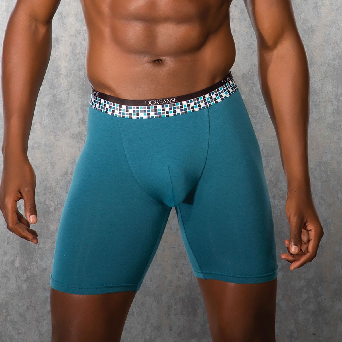 Боксеры из хлопково-модальной ткани. Резинка украшена квадратным узором и полосой с надписью DOREANSE. Круг спереди подчеркивает достоинства. Удлиненные боксеры эластичны и не меняют своей изначальной формы.