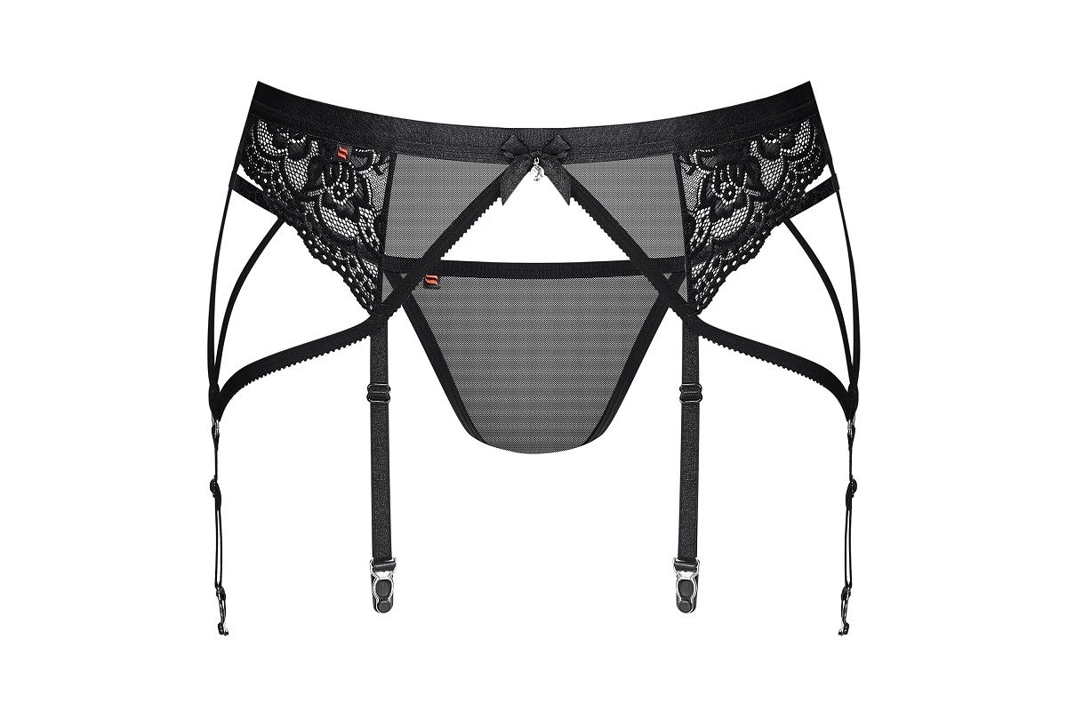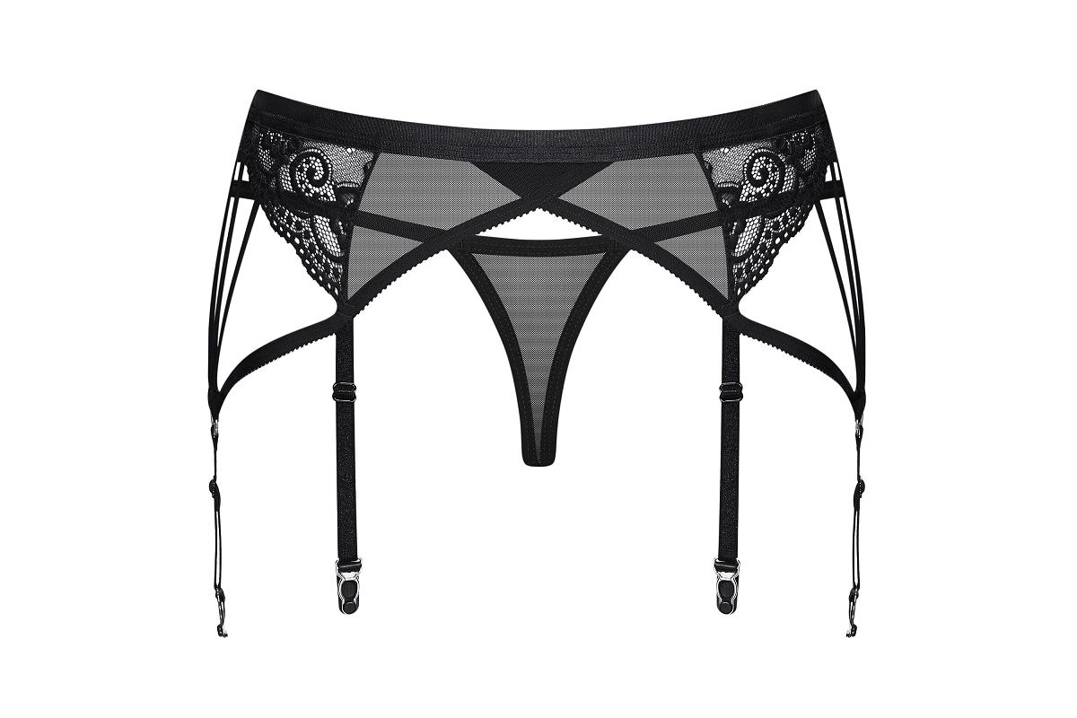 Ажурный пояс для чулок с фигурными пажами. В комплекте: пояс, трусики-стринги.