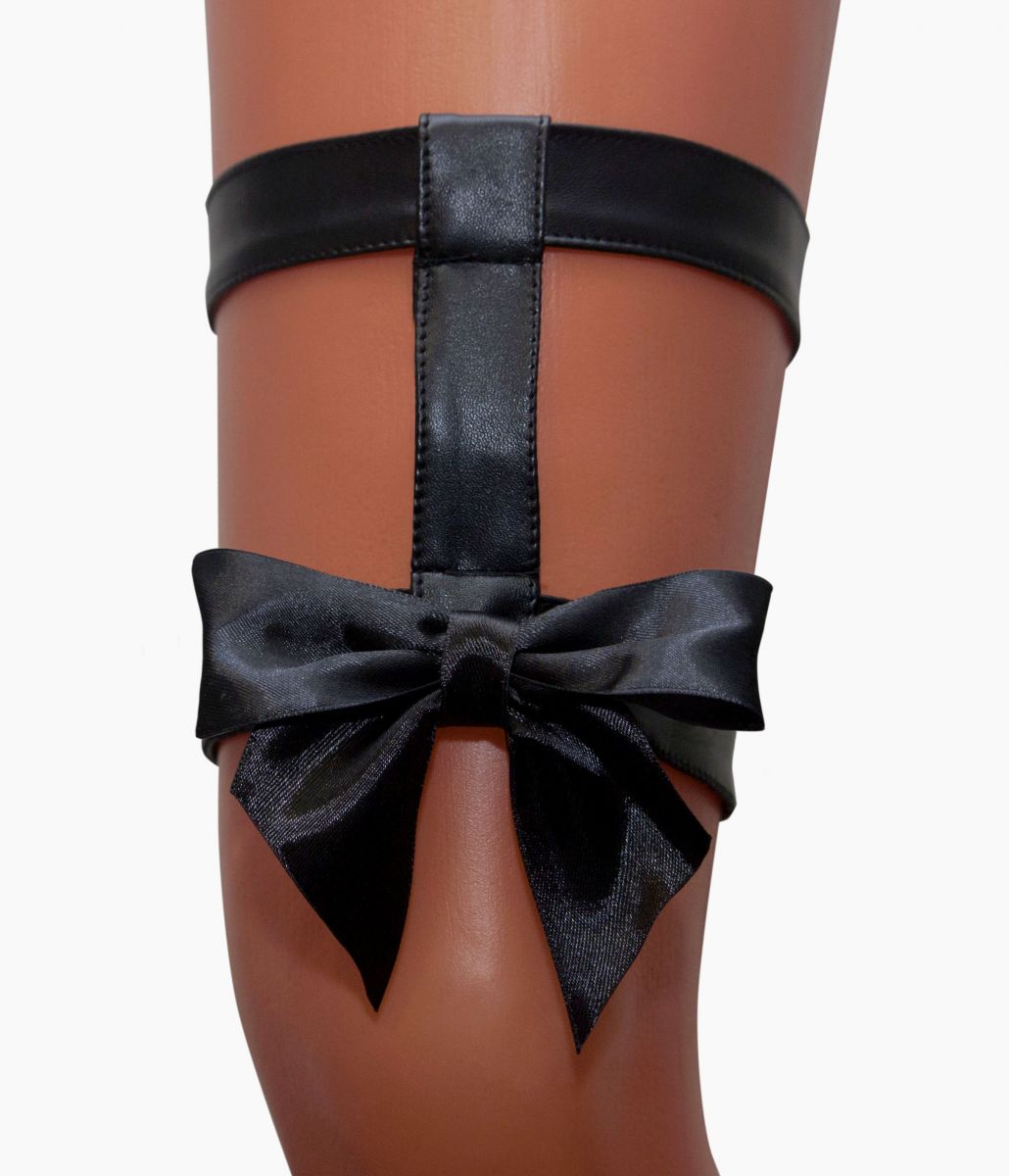 Соблазнительная подвязка на ногу из невероятно мягкой эко-кожи с атласным бантиком. Дополнит Ваш сексуальный образ. Размер регулируется при помощи резинки. Ширина лент - 2 см. Ширина банта - 8 см.