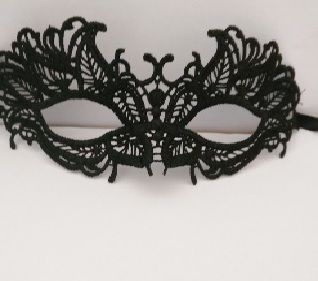 Кружевная маска в венецианском стиле с многочисленными узорами. Завязывается на черные атласные ленты. Упаковка - бумажный конверт. Размеры - 22,5 х 8 см.