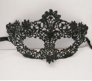 Кружевная маска в венецианском стиле с многочисленными узорами. Завязывается на черные атласные ленты. Упаковка - бумажный конверт. Размеры - 24,5 х 11 см.