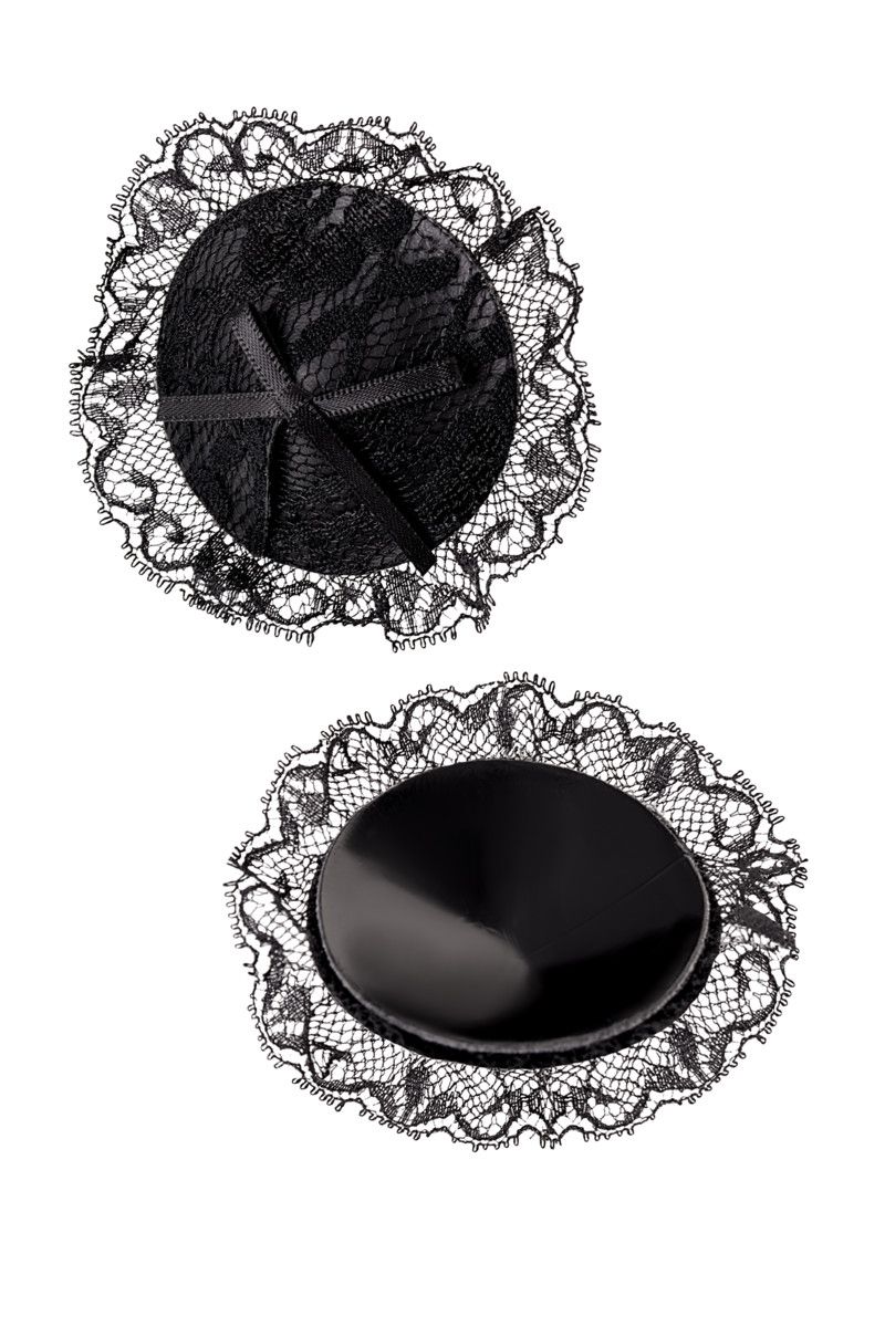 Наклейки на соски многоразовые. Однотонные. Конус выполнен из полиуретана, внутри — слой силиконового геля. Декор: искусственная кожа, кружево, сатиновые бантики. Размер основания - 5 см.