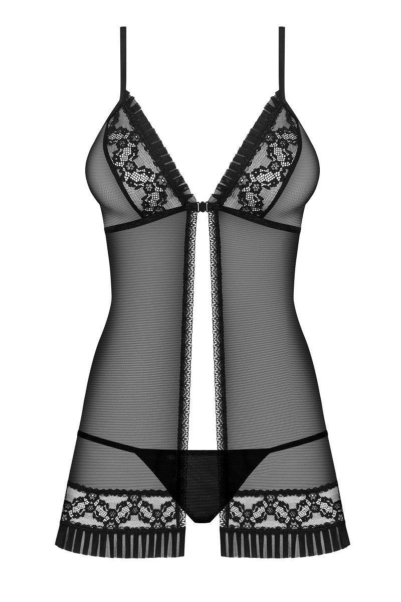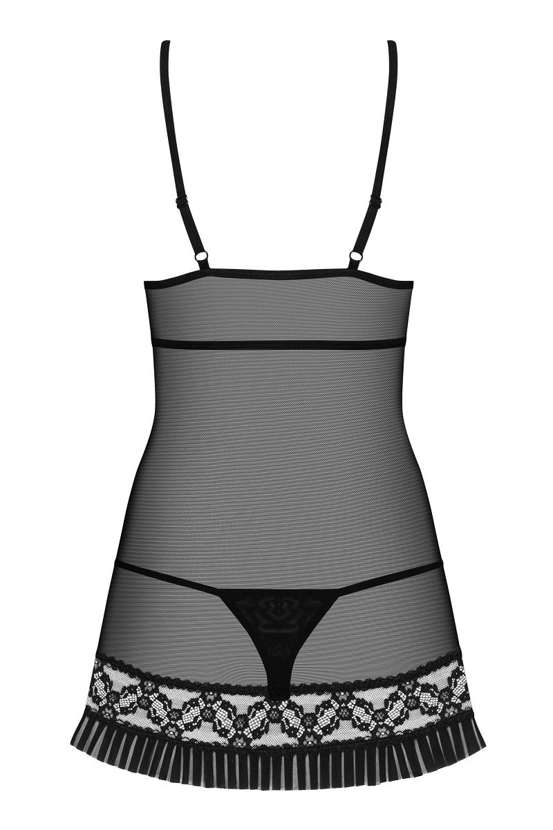 Коротенький беби-долл с рюшевой отделкой. В комплекте: сорочка, трусики-стринги.