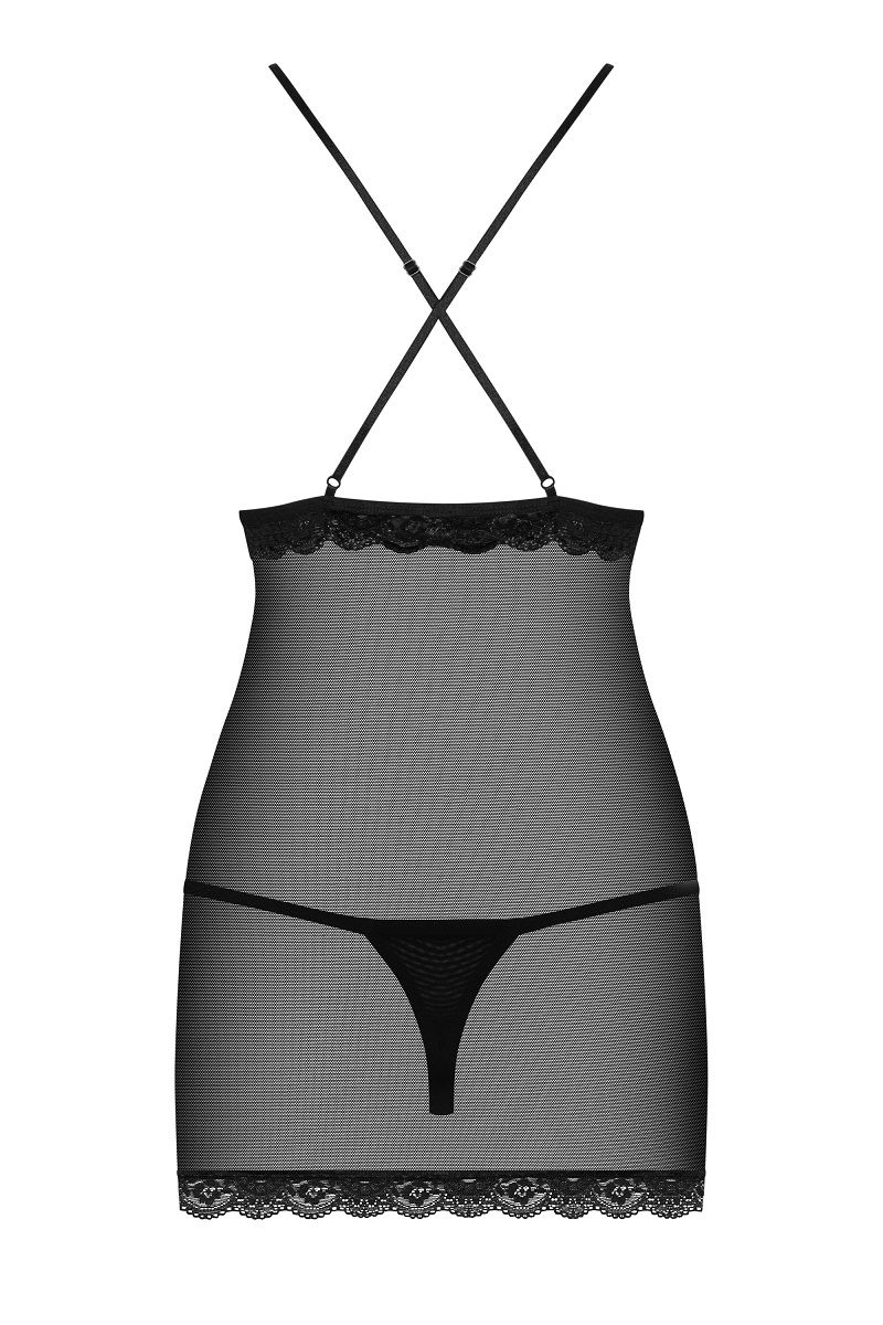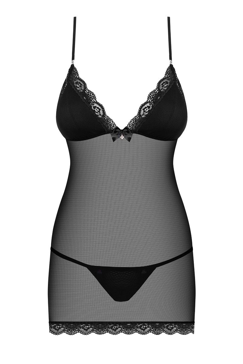 Облегающая сорочка с непрозрачным лифом. В комплекте: сорочка, трусики-стринги.