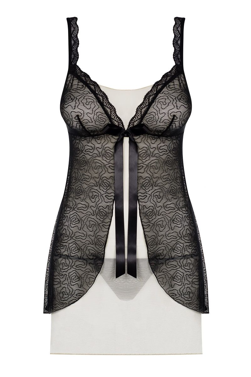 Роскошный бэби-долл с бантом на лифе. уникальная комбинация из двух материалов: полупрозрачного однотонного тюля и изысканного кружева. В комплекте: сорочка, трусики-стринги.