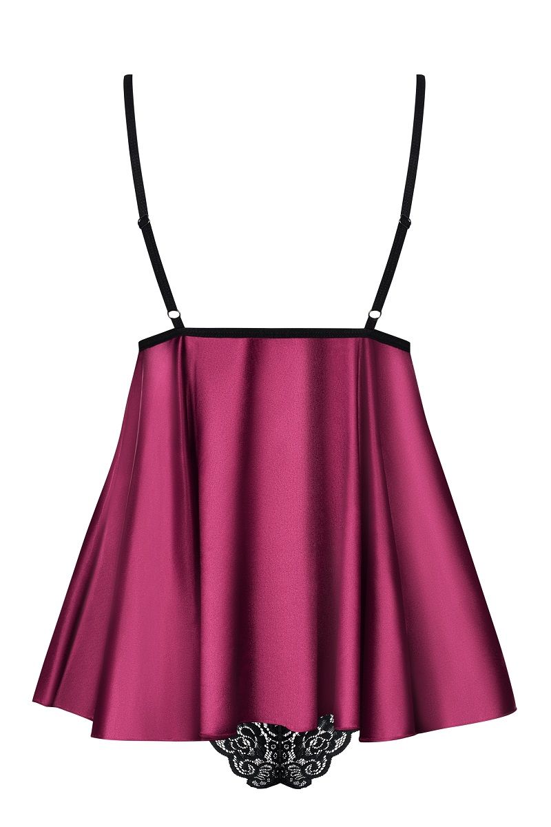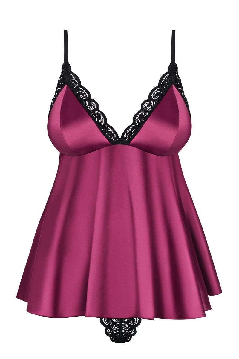 Укороченный бэби-долл малинового цвета. В комплекте: сорочка, трусики-стринги.