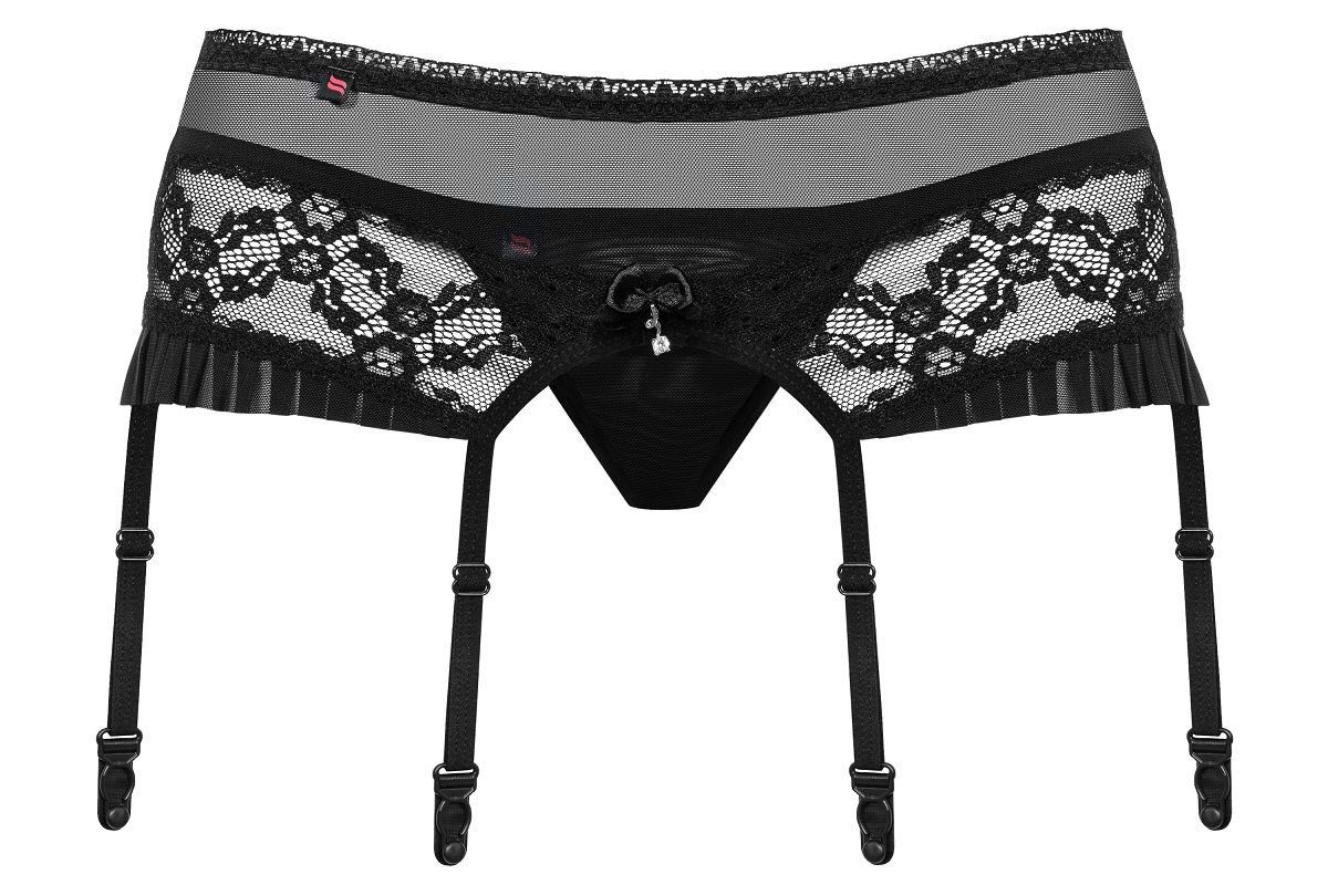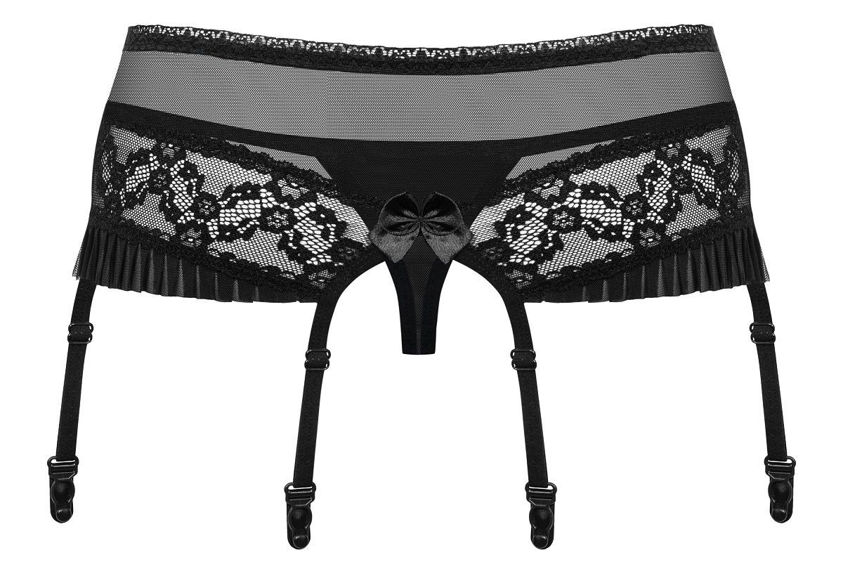 Ажурный пояс для чулок с оборками и трусиками в комплекте. В комплекте: пояс, трусики-стринги.