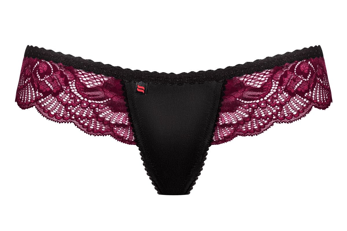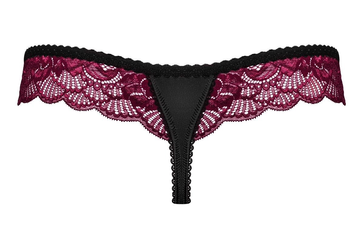 Красивые трусики-стринги с цветочным кружевом цвета малины.