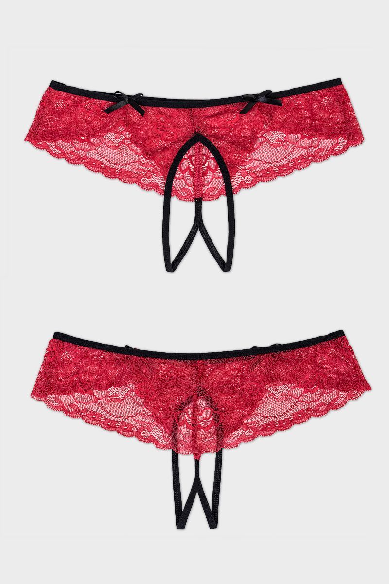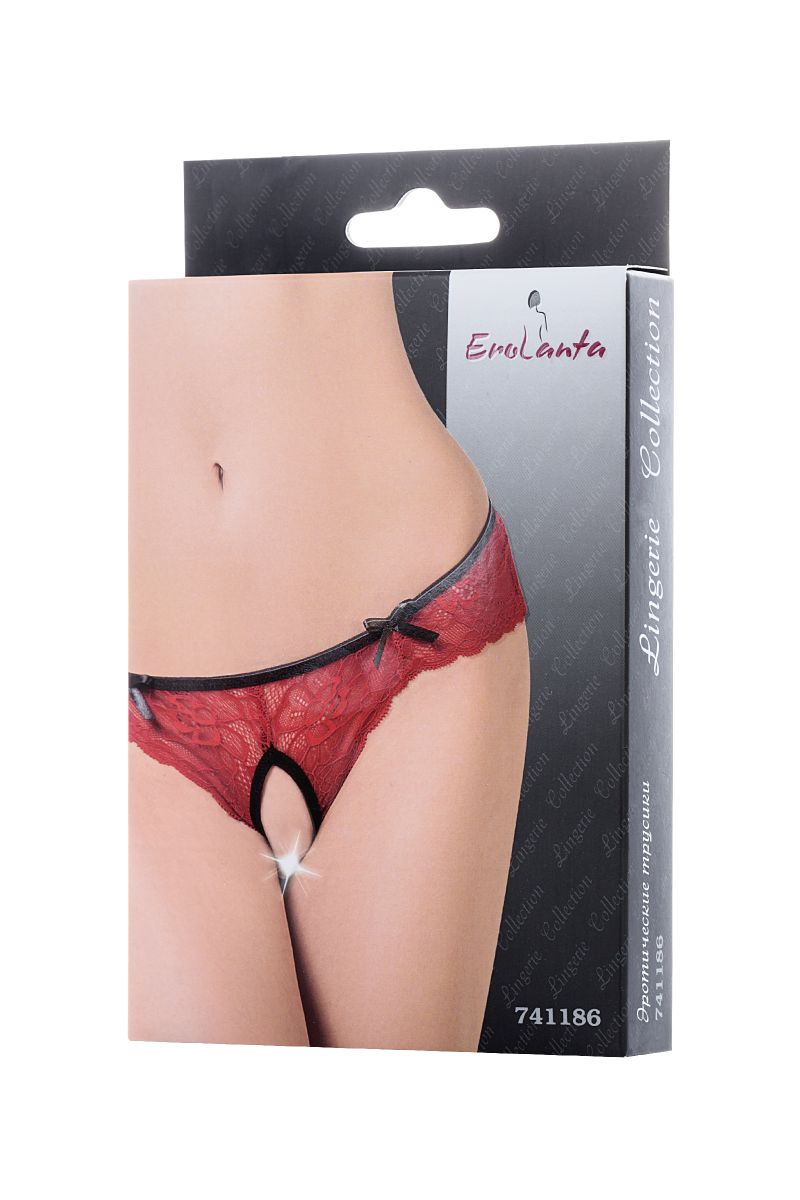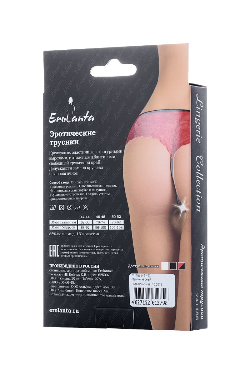 Эротические трусики кружевные, эластичные. Спереди декорированы атласными бантиками. Свободный кружевной край. Допускается замена кружева на аналогичное.