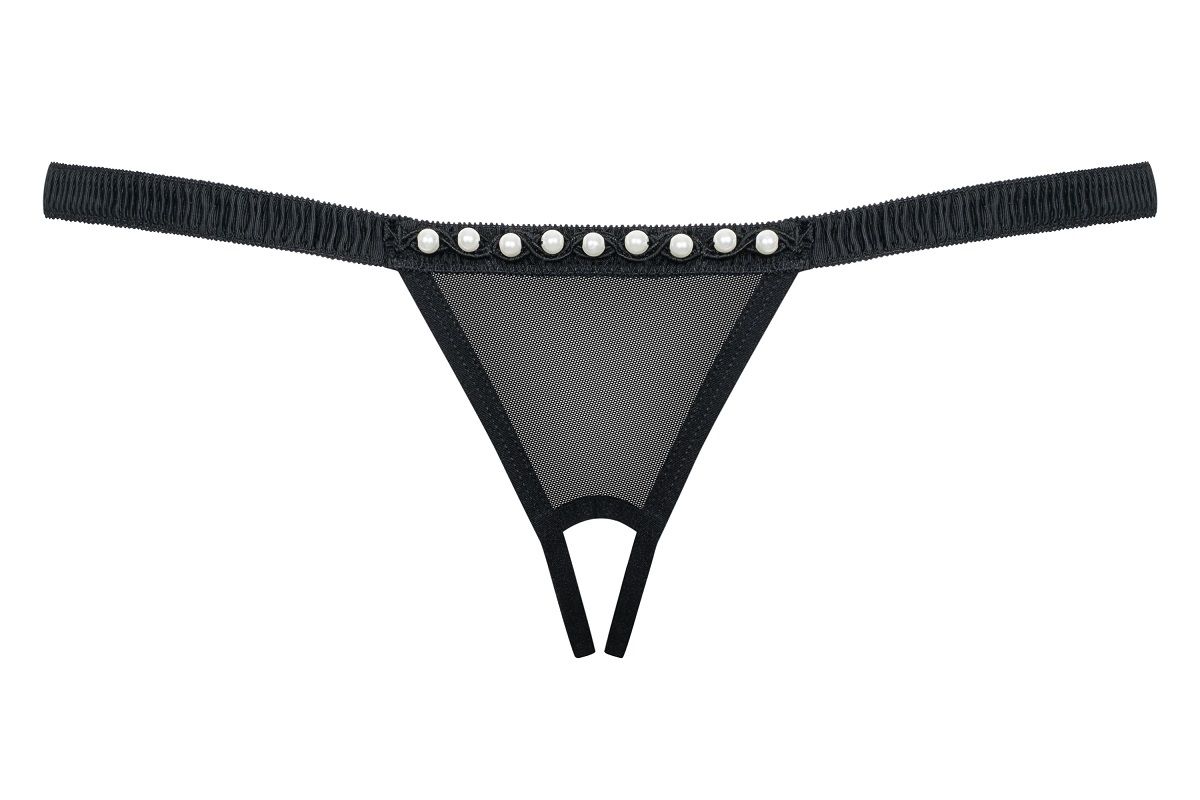 Открытые трусики стринги с доступом, украшены жемчужинками.