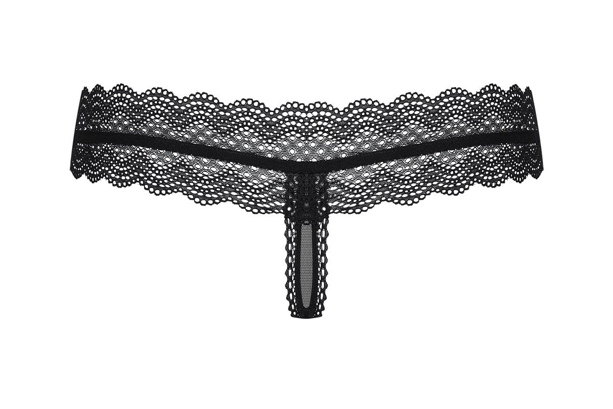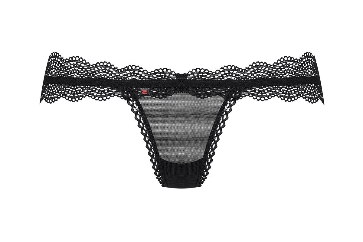 Трусики-стринги выполнены из полупрозрачной сеточки и кружева.