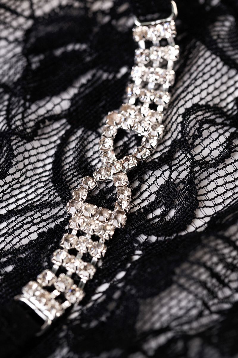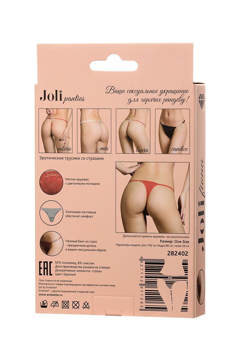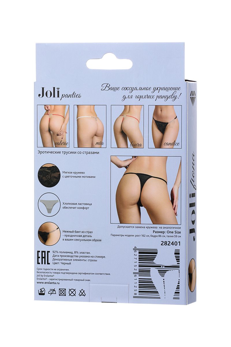 Цветочный орнамент в мягком кружеве спереди. Аккуратный и нежный бант из страз у основания трусиков как намек вашему партнеру, какой подарок ему достался. Хлопковая ластовица и мягкие лямки обеспечат комфорт.