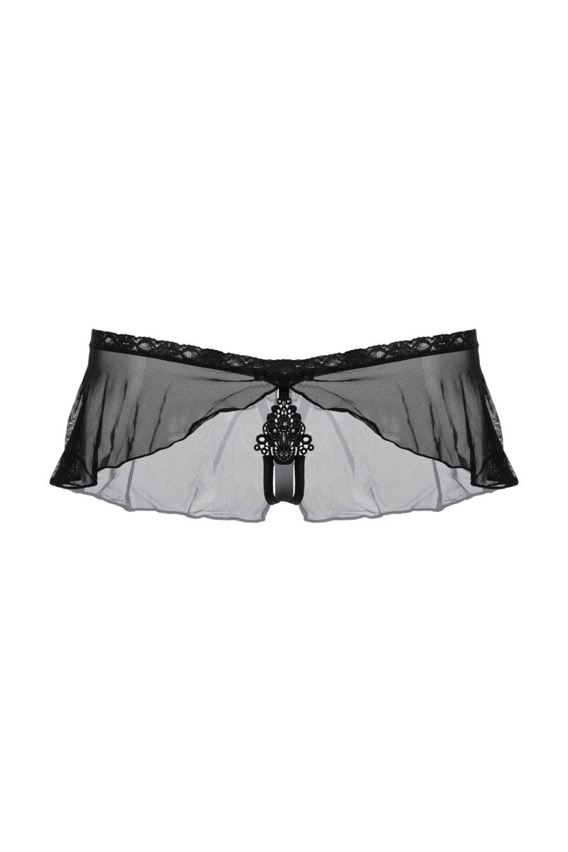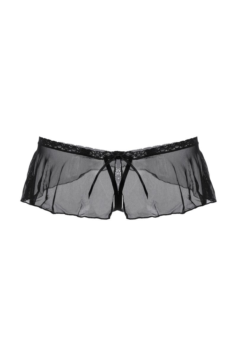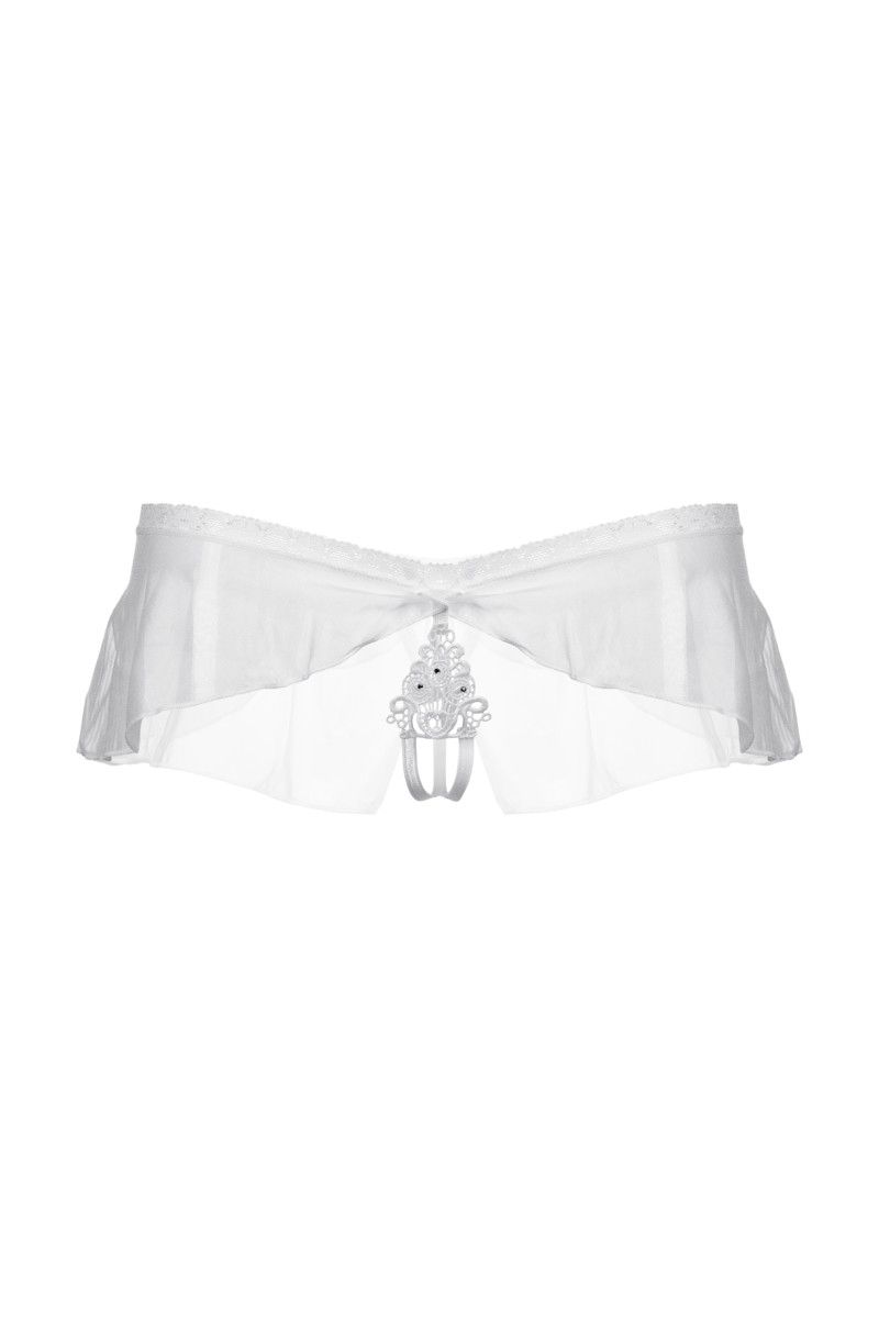 Привлечь внимание, продемонстрировать гладкость кожи, возбудить одним своим видом… В этих очаровательных трусиках в виде вуали на завязках сзади вам удастся выполнить каждую из поставленных задач. Бёдра, окружённые тонкой полупрозрачной завесой, и чувствительные местечки, прикрытые изысканной вышивкой, разбудят самые откровенные фантазии мужчины.