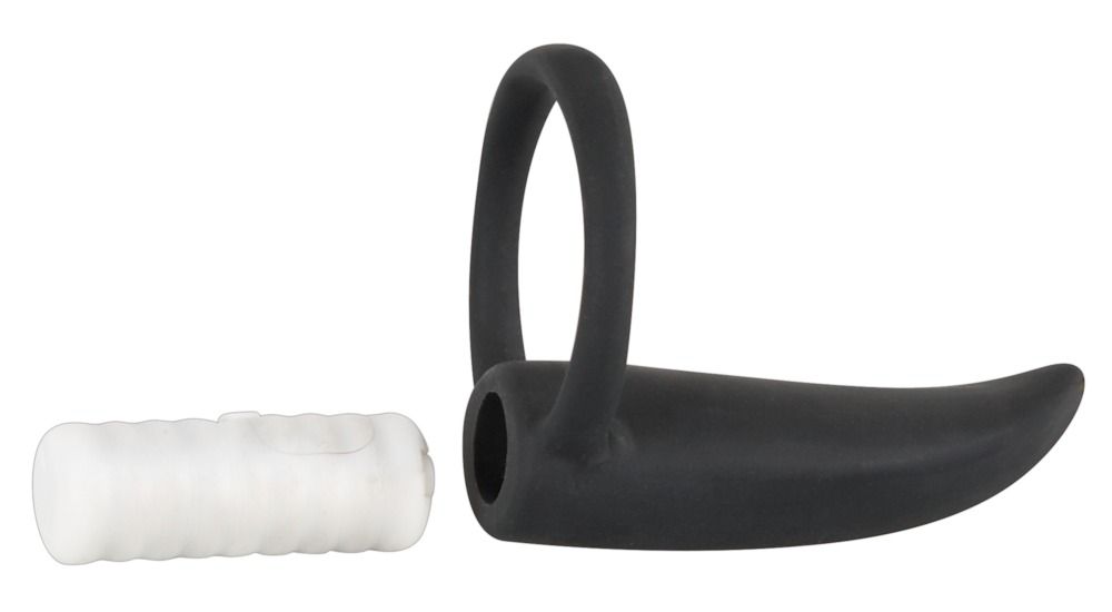 Чёрный вибратор на пальчик или пенис BLACK VELVETS. Приятный на ощупь и мощно вибрирующий. Батарейки в комплекте. Диаметр кольца - 2,5 см. Длина пальчика - 6 см.