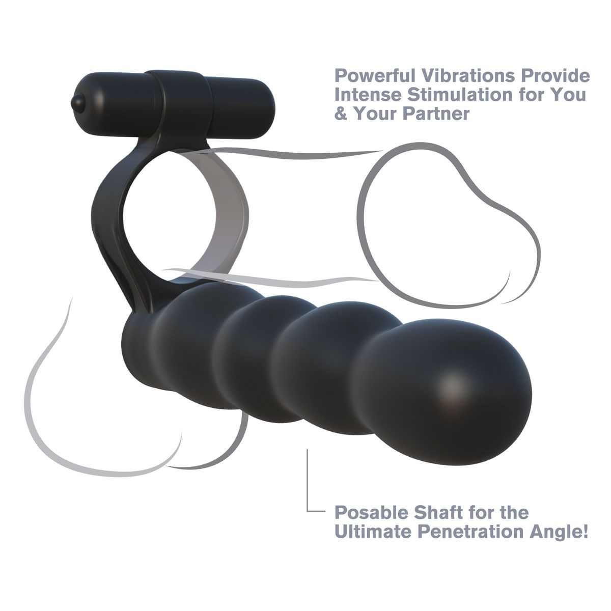Эрекционное кольцо Posable Partner Double Penetrator для двойного проникновения с вибрацией. Трепетное наслаждение двойного проникновения и активной клиторальной стимуляцией. Эластичное кольцо обеспечивает мягкое и плотное сжатие полового члена, поддерживая максимальную эрекцию. Мир мерцающей вибрации обеспечивает клиторальный стимулятор. Форма анальных бус для дополнительных более чувственных ощущений. Ваши фантазии превратятся в реальность. Батарейки в комплекте.